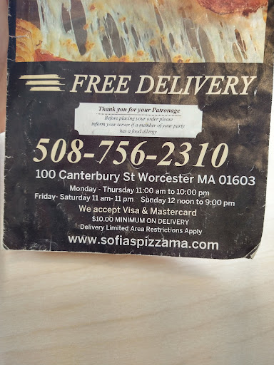 Ā Ā Ā Read moreBest pizza & staff in the city! The pizza is delicious! perfect sauce/cheese ratio ;) Crust is light and airy; not heavy. Toppings are fresh & plentiful; we ordered pepperoni & sausage, pepper, onion. The Manager (Owner?) was incredibly kind and humble as we were ordering as a "Thank you" to the folks who run the local South Worcester Neighborhood Center & Pantry. He was gracious enough to give us a significant discount as he also shares a passion for the local community. When I went to pick up the order, the patrons dining inside were quick to tell me how wonderful the food and staff are as well. We have now made Sofia's our go to place. Really, such genuine, good...