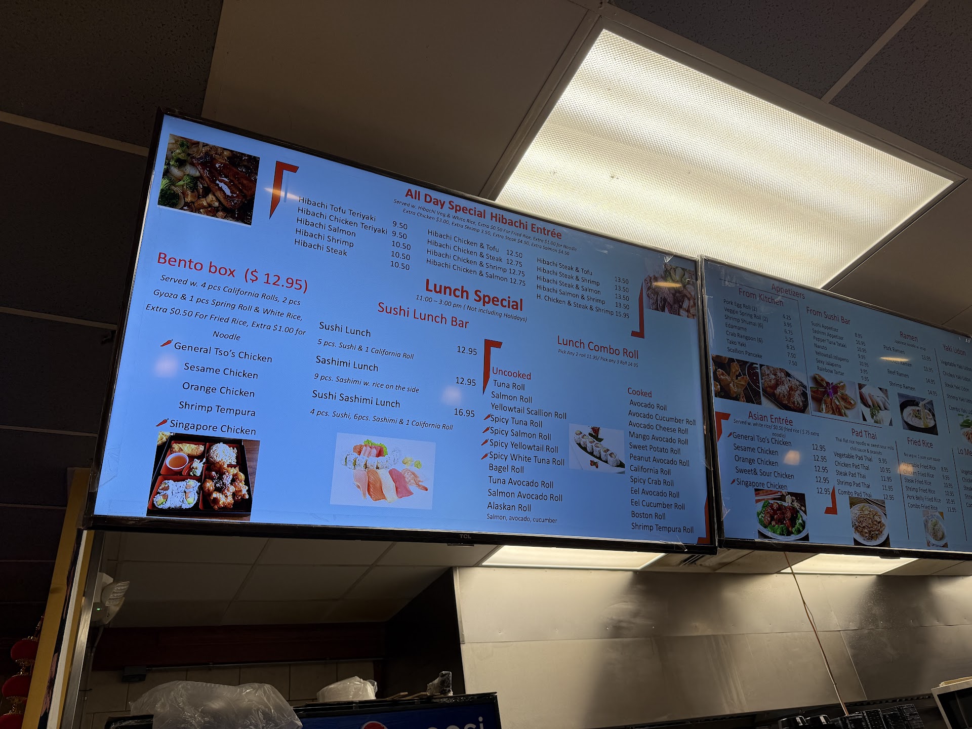 Read moreFirst time trying this place out, I was expecting hibachi food show style where the chef cook in front of u, this is on the side of you, open kitchen and you can see them cooking but not a show 😂 anyway, it was a bit let down when we walked in and didn't see hot plate for cooking show. Then we decided to order the foods anyway, they all came out great. 2 adults and 1 kid ,we all loved it, and servers are really nice and attentive, even though it's more like To-go style Chinese restaurant.this is astep up from that because they have nice dining table and raw sushi as well and others raw fish bar. Portions size is great too. Price is good, I got steak and shrimp hibachi fried rice like $13 but it's a huge...
