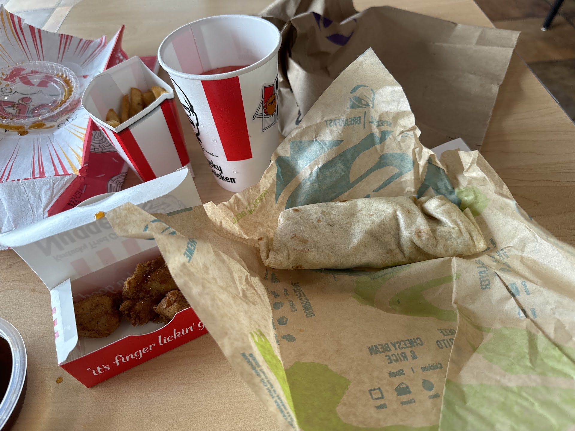 Read moreI usually really like Taco Bell, when itâs decent, Iâve tried this one a few times with high hopes that theyâd eventually staff it correctly and get some consistency with quality control, but enough is enough. In my 4 times going there for various things like kfc or late night tacos they have always been very slow for a drive-through, the service comes across as unprofessional/untrained. Iâd put up with that though if they could actually make a taco, I opened my 10$ Crunchwrap and found a pastry-thin layer of pasted meat and a sloppy helping of wilted and browned lettuce(didnât even eat it), I opened it because it tasted off. One other time I went and got stuck in line for an entire hour behind 2 orders, and when we got the crunchwraps they were enormous, restaurant quality, we werenât even mad lol. But the poor quality control and staffing are definitely the main shortcomings, they could do so well if they could just figure out how to light the parking lot at night and staff it properly. Chalk it up to another case of mismanagement, or excessively cheap...