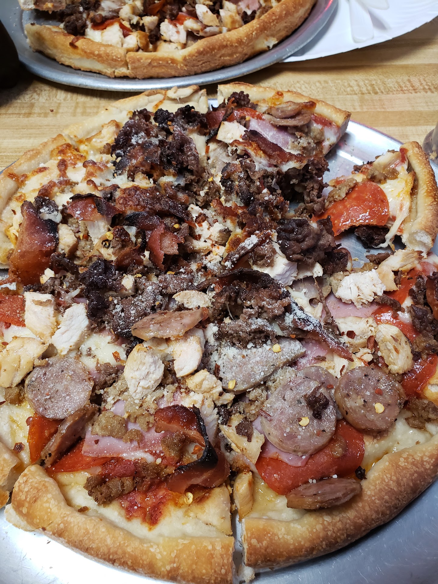 Read moreThe staff is a super great team! They are definitely in tune with their customers and engaging. The menu is typical for a pizza joint. Their pies are delicious! Great crust and I'm a big fan of their sauce. Not too sweet - very addicting! They do not skimp on the toppings either. Fresh and fills the whole pie. Yummy. After the order is placed, grab a table and relax. They will bring you your orders as they come out of the kitchen. Nice feature for a pizza joint! If you're ordering take out, give the proper wait time after ordering and pull up to their drive thru to take away! 4 stars on the atmosphere is only because it's not a brand new facility and the lone TV isn't visible from most seats, but if you aren't alone you should be talking anyway!