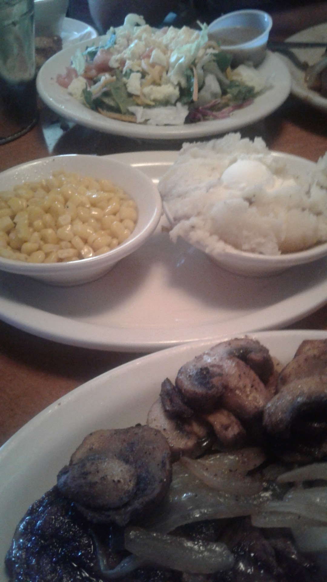 From the start the experience was subpar to say the least. They buzzed us to be seated we then waited until 6 other parties were seated, asked if perhaps we were forgotten (we were). Noticed other tables were sat with what looked like delicious rolls so we asked a waiter for some (the host didn't offer any and no waiter/waitress came to our table for a several minutes) only to have them slapped on the table with an attitude. At least they were delicious, my grandson was very hungry. Maybe if the staff wasn't country line dancing and singing all at the same time more work would get done. I was aware of this before going here so I can't complain too much on that aspect. It was just a bit too often I think. A waitress did finally come over, one of the more pleasant ones in the restaurant, and take our orders. My grandson - kids cheeseburgers with applesauce. Myself - 6 oz. sirloin medium, baked sweet potato with brown sugar and butter, green beans. Son's girlfriend - 6 oz. sirloin medium well, side ceasar, loaded mashed potato. "Known for their delicious steak" I've seen other reviews say.... When our meal finally arrived it was set down so quickly and the waitress basically ran away. We cut into our steak, mine was well done, my other guest's was beyond well done and both were almost completely cold. My grandson's cheeseburgers were cheeseburger chips, no exaggeration, I split one in half, there was no burger, just charred all the way through. His applesauce was soup. Let's talk about the sides. Our potatoes were so cold that her cheese and my butter didn't even melt! I can't speak of the green beans, they almost made me sick, they were mixed with something else. They tasted like what I would imagine would happen if baked bean juice fell into the green beans container. (The sides menu simply said "green beans") No one walked by and the waitress never came back to check on us. We ate what we could and waited for a half hour until the manager finally made rounds. I thought this was odd considering I had not seen waiters and waitresses in our row of tables so I'm thinking there must have been some sort of issue that we were unaware of yet that is no excuse for the poor service and disgusting food we received. He asked how everything was and my guest was kind (as we both were this entire time and even at this point) but she did say "well it was just ok". He then asked what was wrong and could he help. All we said was it was cold. Honestly at this point we just wanted to leave and get my grandson some food. He noticed my grandson ate none of his so I did show him the burgers. He took it off the bill and gave him some rolls to take home. That is the only reason for 2 stars on my review. We will absolutely never...
