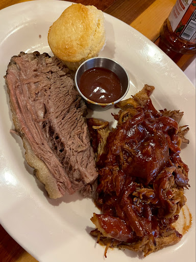 Read moreExcellent BBQ and great service! We ordered the 1/2lb pulled pork and 1/2lb brisket, which came with 2 sides and a corn muffin, and an order of 6 wings. All of the meat was tender, flavorful, and freshly cooked. The wings are massive! We ordered them with sweet chili (my favorite) and BBQ sauce. We got onion rings, sweet potato fries, and cole slaw as sides, everything tasted fresh and homemade. Even the corn muffin was fresh out of the oven and still warm when it got to our table. There were no leftovers - the portions are decent, but everything was just so good that our plates were cleared! We ordered a few corn muffins to go, which were great with coffee the next morning.