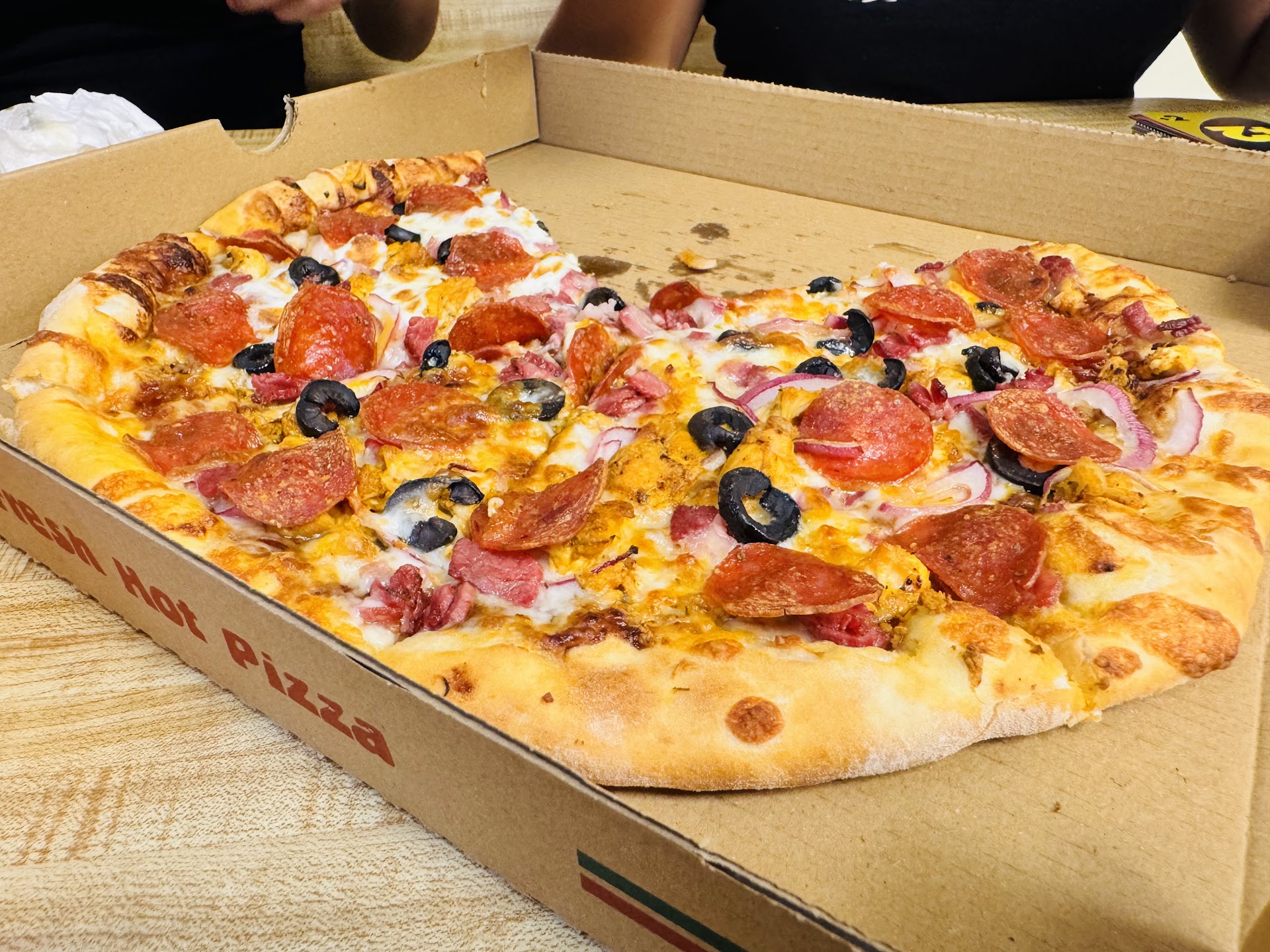 Read moreGot delivery on a Monday night. They were faster than expected. I got a large bacon pizza and small mozz sticks. Lemme tell you, this place is genuinely good. The dough is super soft on the inside and crunchy on the outside. Good quality bacon on the pizza which was a nice surprise(you never what type a place uses). Definitely...