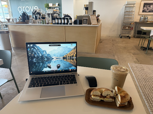 I'm excited to have a cafe nearby that isn't Starbucks. I love trying different coffee shops, and Grove has potential! The coffee was good, and the service was kind. I love that they're working on their latte art. I hope they make their own syrups down the road, it makes a world of difference in a latte when the syrups are homemade. I would love to see more warmth added to the space to make it feel cozier and make you want to hang out. Maybe adding a few more soft places to land, such as additional upholstered chairs that create cozy nooks and take up some space, small fresh flowers on some tables, and more rugs and plants could be mixed in. I love working in spaces that inspire me, and there's so much room here to do that. I know they're still working on it, but I wanted to share some ideas. :) But for this soft opening, you guys are doing great, and I can tell you really care about the quality...