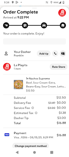 I called them once I received my food because I realized they only really gave me one spoonful of guacamole, they only gave me a little squirt of sour cream as you can see just on the top, and they honestly included absolutely zero nacho cheese with my nachos!!