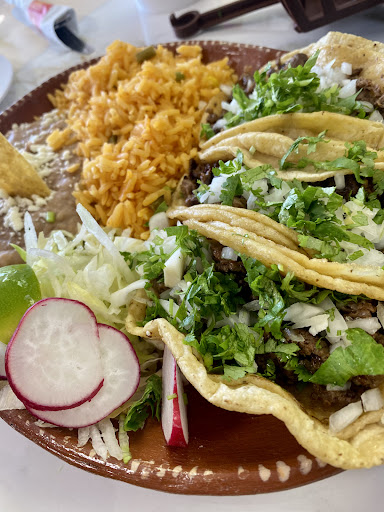 Food: The high review ratings are accurate; I had the steak tacos with cilantro and onion. My boyfriend had a steak burrito he liked very much too. The wait time was quick. In the meantime, my boyfriend and I got our tortilla chips and salsa, with a cold but spicy salsa dip. It was a good spicy flavor that wasn't too bitter or overwhelmingly spicy. My tacos had a fair distributed amount of ingredients - that is, there was a fair ratio of onions and cilantro to my steak. The tacos were served with two limes, two radishes, a fork, and on double tortillas. The steak was easy to chew and cut up nicely (I've had steak at other places where I have to chew excessively or I'll risk choking on it). The onions on my tacos were surprisingly but satisfyingly on the sweeter side, instead of notably bitter. There is red salsa and green salsa. While I didn't try the red one, the green salsa was also spicy and not painfully overwhelming. My boyfriend and I just had glasses of water that came in glass mugs, but the mugs themselves were nice in themselves and were clean.