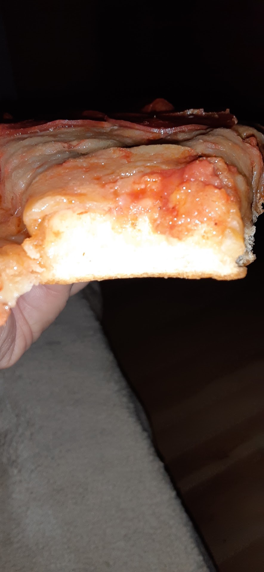 *Edit new review 5/20/23 I haven't been here in a few years, ordered 2 slices of pepperoni and they were the most disgusting flavorless pizza i have ever tasted. The dough has no taste and why is the dough so super thick??? Way too much dough and bad dough to cheese ratio. I didn't taste any sauce is was like they put light sauce, why would you put so little amount of sauce for such a doughy pizza??? Also i seen the girl just slap on some cold pepperoni's onto the slice and package it, like really you can't bake a pepperoni pizza with pepperoni already on there? I give this experience 2 stars only because the cashier was super nice or else i would've given it 0 stars. I took a couple of bites and threw the rest away, you can get better slices from almost anywhere. Sure its a huge slice but what does it matter if it's inedible. This was the worst pizza i have ever tasted, bland no taste, way too doughy, not even close to the amount of sauce you need for that type of slice...NOT ENOUGH SAUCE!!!!, and cold pepperoni's just thrown on not even getting baked. If you do not like way too doughy dry slices with cold pepperoni's thrown on at the last second to do come here beware. For $7 dollars it's not worth it.