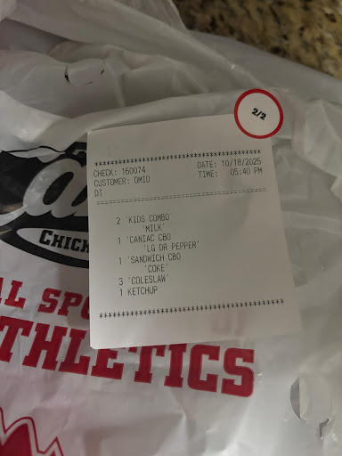 š½ļø Food/Drinks: I ordered my usual, the Caniac combo (No coleslaw and sub for a Texas toast) with a Sprite light ice. It was very delicious! Tip to customers: I highly recommend asking for light ask because at some locations, they will fill the big cup with ice and not so much of your drink. By the way, Caneās ice hits different. Iām an ice lover and the ice is crunchy but also not too crunchy.