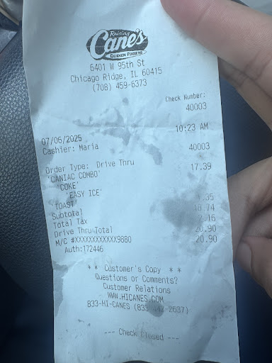 š I hope this review helps Raising Caneās in the Chicago Ridge location, Raising Caneās in general, & its current and future customers.