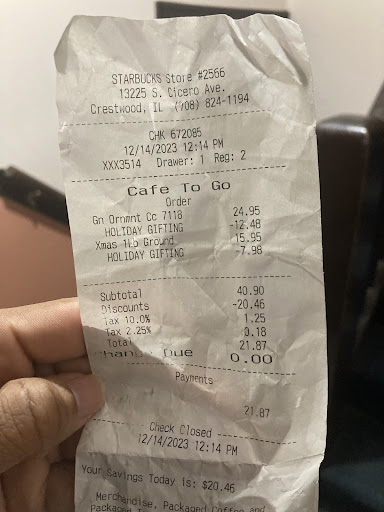 Read moreMy husband and I order from the Crestwood location very often but lately, we’ve had very bad experiences. Most of the employees are nice but there is one person that is very rude and consistently makes our orders wrong. I don’t want to put her name in here but she has lime green hair. I can’t name every single instance that we’ve had a problem with her because this message would be 10 pages long, however just recently, my husband went in there and she made my drink wrong not once not twice but three different times and got more rude each time My husband told her it wasn’t the right drink. It wasn’t a complicated drink there was no add-ons. It was just a plain hazelnut shake and espresso and she kept making the hazelnut cold foam drink even though my husband told her it was not the right drink. Then, the next time we were in there, which was the next day she must have recognized us, and while she was making our drinks, she took one of the lids for our drinks, rubbed it all over the counter, which had Liquid on it from other drinks that had been spilled, and proceeded to put the lid on one of our drinks. Today, my husband stopped in after work, and he waited 39 minutes for two drinks because she was ignoring everybody that was in the café and just taking care of the drive-through even though there were two other employees making drinks for the drive-through. But she had time to take care of two people that walked in after us, and they seemed like they were her friends. She took their order and got them their drinks before she even started making ours. Like I said at the beginning we stop at this Starbucks very often but with how rude this person is it really makes me consider going to a...