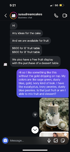 Read moreSusu has done the cakes for my three daughters birthdays, special occasions, holidays almost 8 years now! I don’t even know where to get started! I’ve been to many bakeries in lots of areas but have found them to be lacking in something; price, taste, or overall attention to detail. In my experience with Susu I can say that she can deliver all three of those very important aspects that any customer is looking for! I will always be confident bringing Susus with me because I know that just as it is beautiful it is DELICIOUS! Their attention to detail and taste is something that will always keep us around! My girls know the difference of a Susu’s Dream Cakes cake and a lacking cake from another bakery. Susu will always give you the best options for your budget and truly have you spend on what is important! I love Susu’s Dream Cakes and will never stop going to it as they have truly shown to be a hidden gem that only the lucky ones get their hands on! Try...