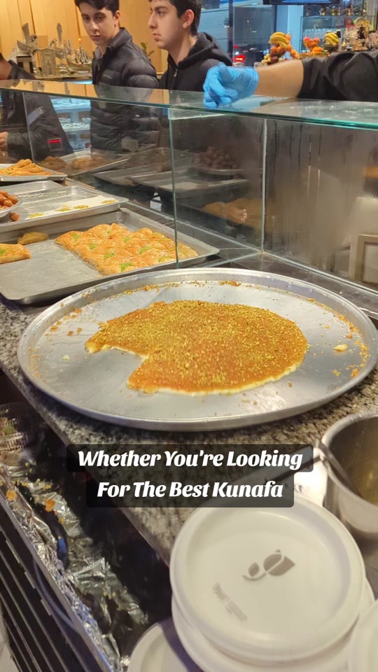 Read moreCame in on a whim after pumping gas next door and noticing the large crowds. I quickly skimmed google reviews/yelp and can understand where the mixed feelings come from. When you walk in there’s a stand that looks like a cashier, there was a young guy who looked at me and carried on his business until I asked hey where do I start? He pointed towards the sweets and onward I went. There are two signs up above that state “order here” so I simply stood behind the already formed line to wait my turn. There was a man and woman tending to people in line but once it was my turn they just didn’t take my order. Suddenly a random guy comes up to me (i thought he was ordering with the group in front of me) and starts talking to me, at first I thought he thought I was someone he recognized because he kept speaking Arabic to me. I explained I do not speak Arabic, he then walks me out of the line and gives me some coffe (which was a really nice gesture) but we can’t understand each other so he takes me to another young guy who apparently spoke English but wasn’t willing to engage me, so then he starts talking to another guy and due to the language barrier i wasn’t able to inquire much so I just opted for the knafeh. Language barrier aside I think placing an order, getting your order and paying was just way too much back and fourth. With that said the random guy who gave me coffee was really sweet and was genuinely trying to help me, did he work there? Who knows! Once I got home I had lowered my expectations to zero but was pleasantly surprised at how delectable the knafeh was. It was light with a perfect amount of crisp topping and not overwhelmingly sweet like some Turkish desserts can be. One slice cost...