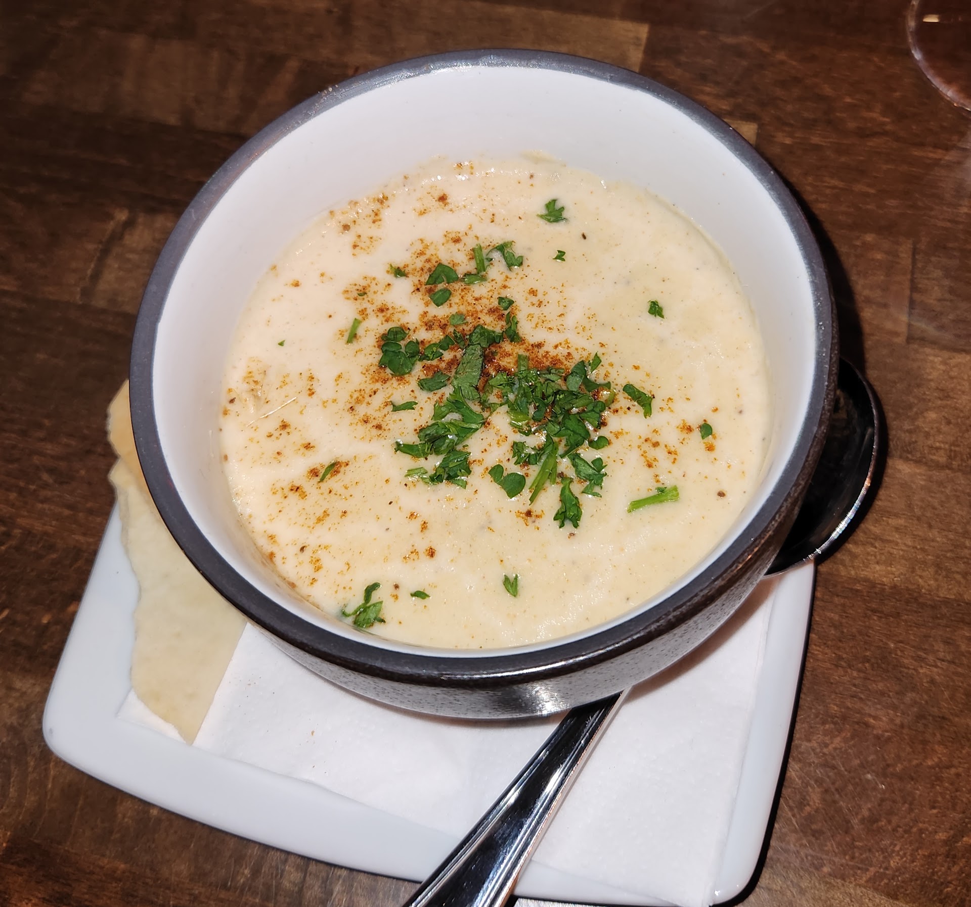 The soup was excellent. I'm very picky when it comes to crab, as I'm from Maryland. There wasn't much thickener (flour), so I was glad about that. The price was reasonable, $7.95 for a cup.
