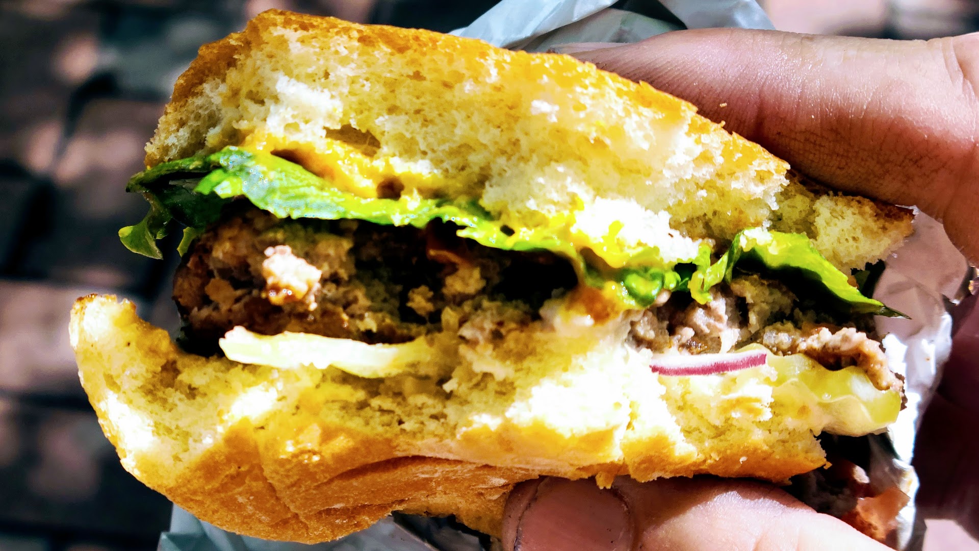 It was a much bigger burger than I expected. When I realized that my initial plan was to eat half of it and save half of it for the remainder of my bike ride. That didn't happen! It was so good I couldn't resist eating it all.