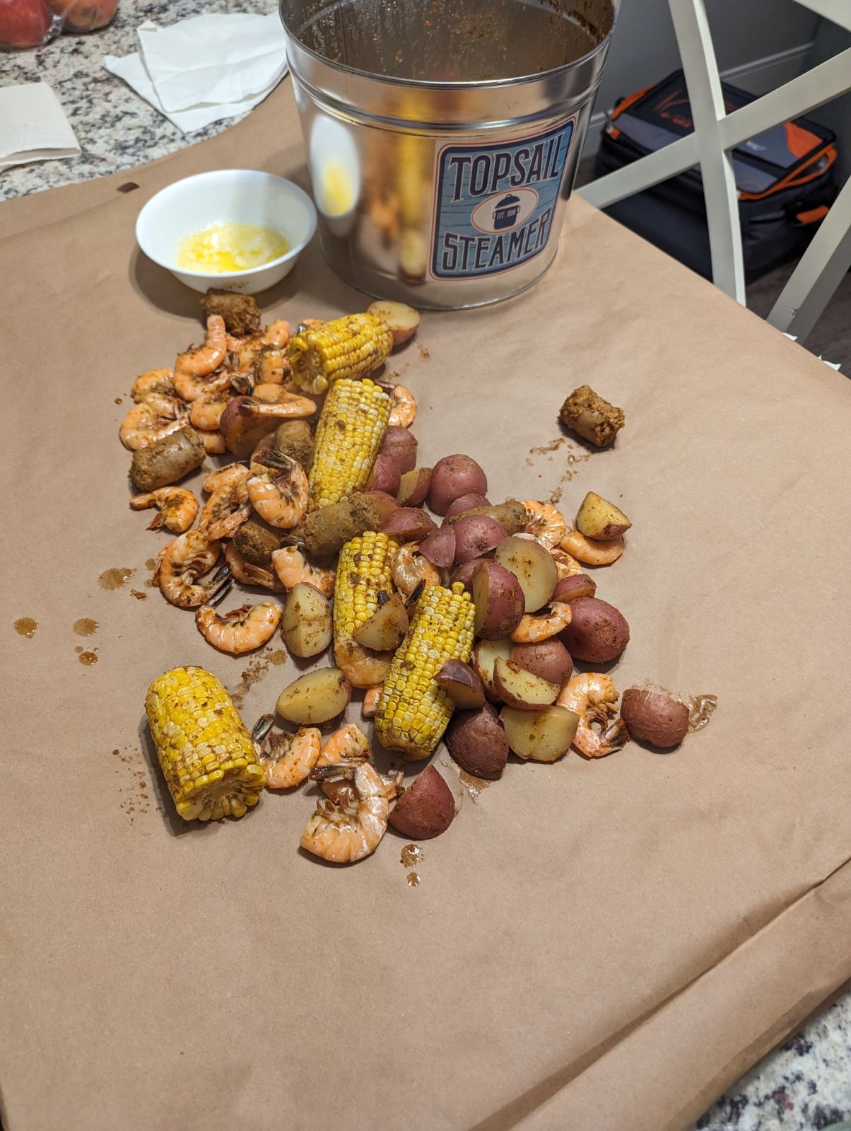We had my son and family plus my wife’s close friend from Minnesota over for dinner. I thought that The Low Country Shrimp Pot would be a fun dinner especially for the Minnesotan.