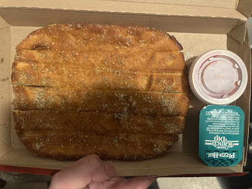 Read moreSo I ordered a little later but made sure it was in before 11:30 since they close at midnight on Friday night. Picked it up- got home and I ordered a regular breadsticks and the lil bites pizza. Even tho I was picking up I gave over a $4 tip since it was end of the night. I did NOT get a regular full order of breadsticks- I received some flat over cooked piece of dough that was sliced and not even pulled apart. The entire thing was probably only a 3rd of the thickness of a single normal breadsticks. The pizza was a bit overcooked- normally this would not bother me but having the lil bites crust- half of the bites the cheese had exploded out and they were empty. Could not return due to the store being closed by the...