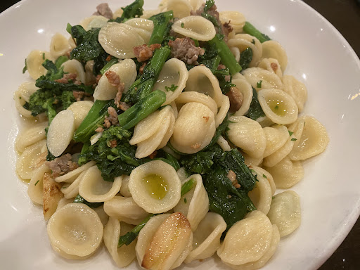 I eat here every so often, mostly stop in for pizza with my son. This is the 3rd time I have actually sat in to eat and I love the food! Our waiter was really nice. Here are the downfalls, 1. The hostess, when I came in she was on her phone texting (than again what can I expect from a high schooler) when I asked for a booth she said they are reserved , than as we're passing a table that was a semi-booth she said that is reserved so we sat at a table in the back, honestly it was fine but for her to tell me that out table was the only table left is insane especially when I'm sitting next to 3 open tables. Than when I asked to wrap the food the guy that is clearing the table had an attitude . Look if you don't like your job than look for something different, your working in a moderate price restaurant in a nice area, either put on a fake smile or go somewhere else . It really makes me not want to eat here anymore. I'll keep it...