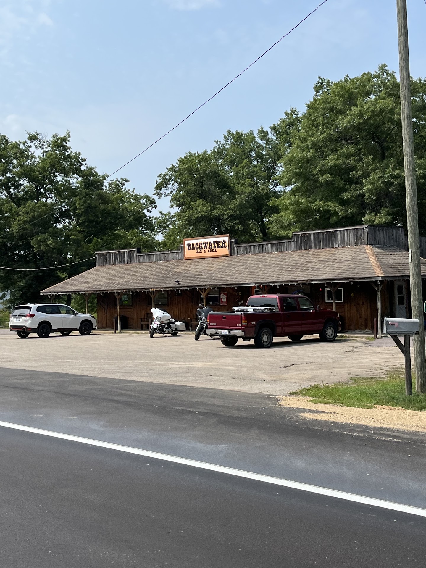 Driving down the highway heading home. We saw a small dive bar across from an ATV trail. The sign said good food and cold drinks and since I was out of water, I thought we should stop in. Inside was a unique wrap around wooden bar with eclectic items featured everywhere you looked. The bartender was so friendly and inviting. We looked for some gluten-free options, and she had offered to do bun-less burger, or there were some chips and mini tacos. The drinks really are cold and the food is good. While we were chatting with the bartender, we saw fishermen outback, catching giant catfish. The bar has a very homey feel and is very clean. I definitely would stop back to hang out because I...