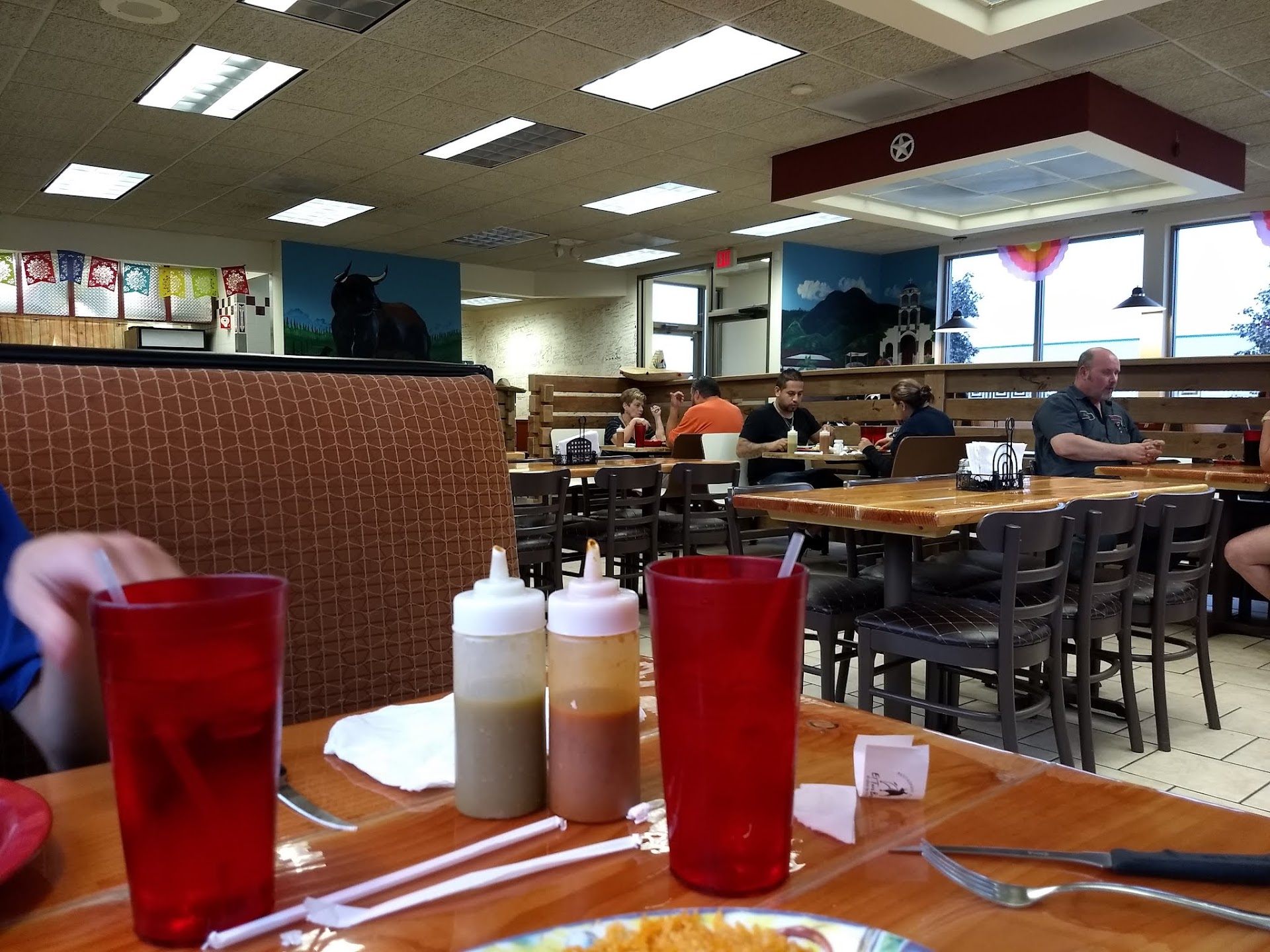 As for the food, it was good. They took a little time, but it's food that they make at the moment, which I appreciate. To be honest, it lacks a bit of salt, but that's something available on the table, and you can add it to your taste. The sauces and other things for the food are self-serve, which I find very good.