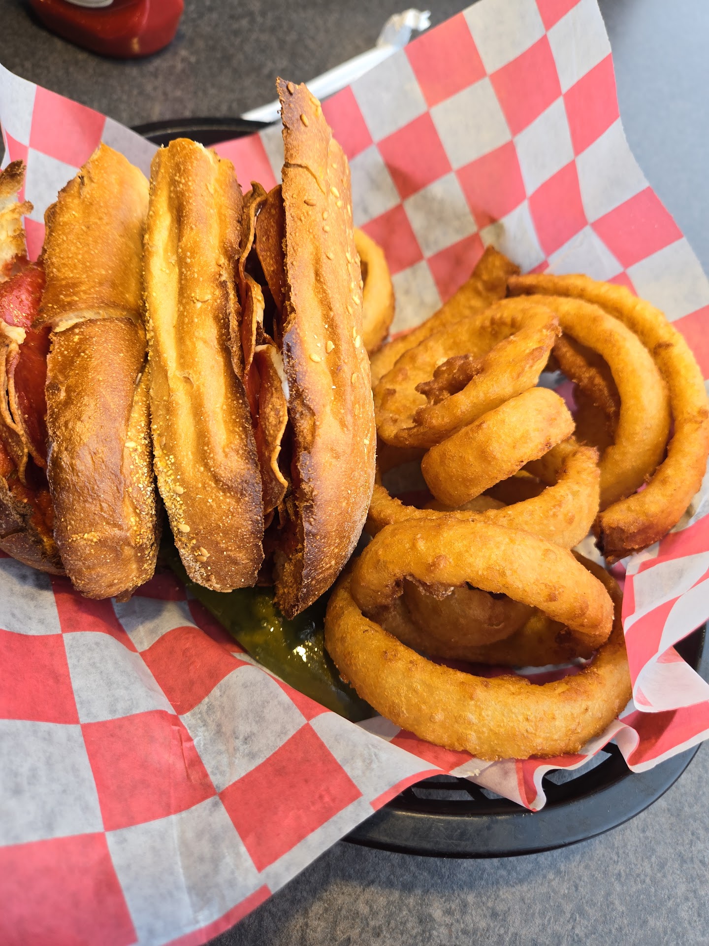 Read moreordered and paid online...Picked up take out... Said approximate time was 20 minutes... We arrived just at 20 minutes and just had to wait maybe 5 to 10 minutes which is fine for me because I prefer to have my food as hot and fresh as possible rather than having it sit around... Before ordering I called and talked to somebody and they do deliver themselves rather than using a service and currently they did not have any desserts because they make them homemade and the individual who does that was currently not with them for some reason.. my son had the mad Burger which was great he said and added sweet potato fries so it came to $15.50 which I believe is about average for an Applebee's or someplace similar... I had a super deluxe sub and added onion rings and that came to $16... I believe that is a touch pricey for subs however it was good and came wrapped in two halves in foil in a box with my onion rings which were still hot and crispy when we got home and those were decent... We ordered an all meat burrito to put in the refrigerator for the next day which was $13.. we taste tested it and it was quite good... THE REASON WE MUST GIVE THEM THREE STARS IS BECAUSE THE BONELESS WINGS WERE NOT BONELESS WINGS AT ALL... WE ORDERED A MEDIUM ORDER OF BONELESS WINGS WITH A MANGO BARBECUE ZING SAUCE PAYING $9.. SO IN MY EVALUATION AND EXAMINATION THE BONELESS WINGS WERE JUST A LARGE CHICKEN BREAST COOKED OFF SOMEHOW WITHOUT ANY BREADING AND THEN EITHER CUT INTO SQUARES WITH A SCISSORS OR WITH A KNIFE AND JUST SIMPLY TOSSED AND SAUCED AND PUT IN A BOX WITH TIN FOIL... SOME OF THE CHUNKS OF MEAT WERE GRAINY AND TOUGH... WE WERE DISAPPOINTED BECAUSE THE ONLINE ORDER MENU DID NOT MENTION ANYTHING ABOUT THEM BEING NAKED AND UNLIKE A USUAL BONELESS WING... HAD I KNOWN THIS I WOULD NOT HAVE ORDERED THEM... Other than that major issue I would probably try them again and maybe try their Pizza and maybe some of the other items we ordered as well... Maybe a bit pricey but everything is currently up in price... Would give them 3.5 Stars maybe even 3.75 stars if Google...