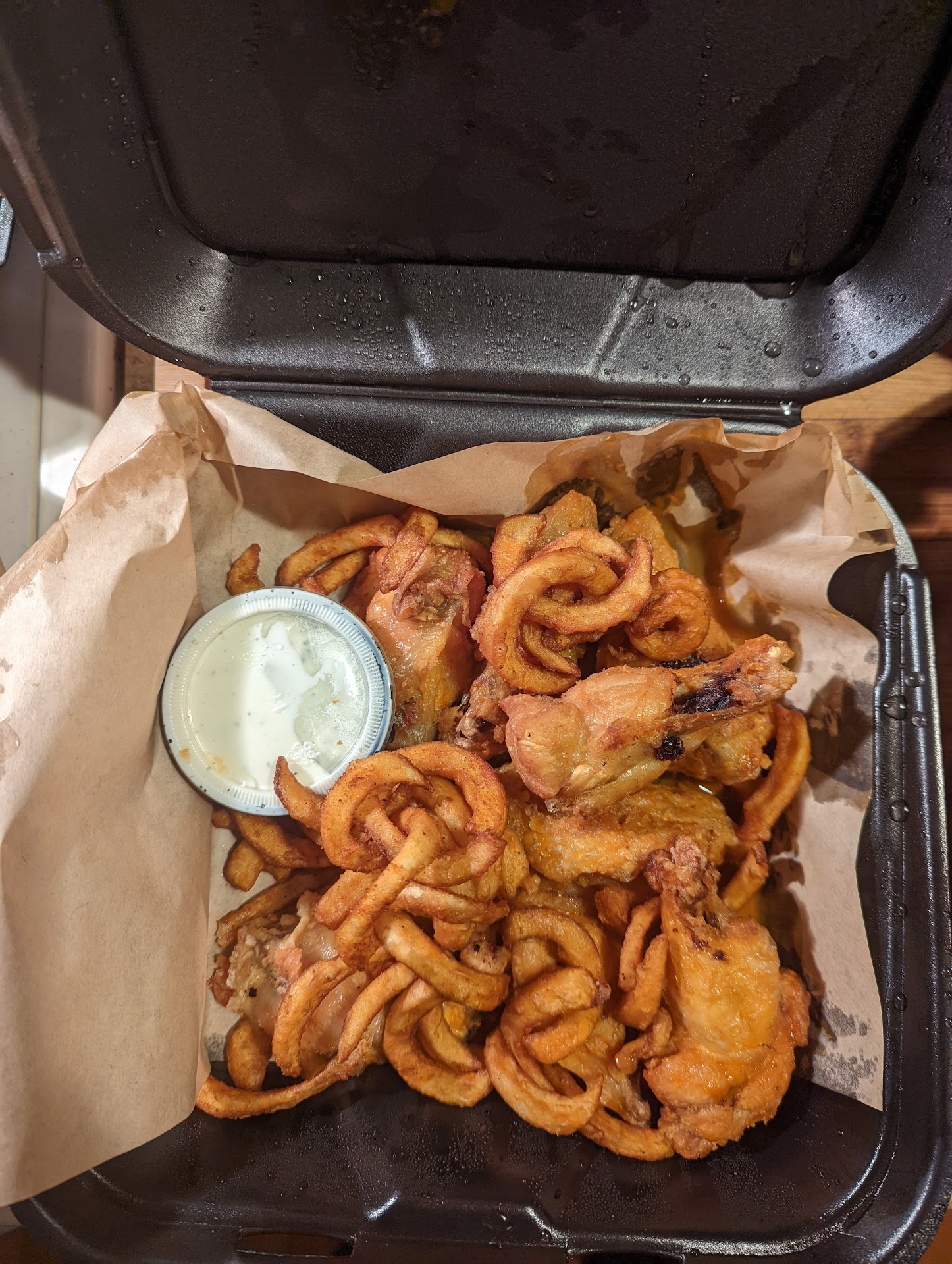 Read moreThis is the second time ordering from here, both times I was extremely disappointed. This is why I don't usually give second chances. Food Service just isn't for everyone. The wings and fries came in one box covered in a disgusting sauce that I didnt order. The preparer put a small container of some weird redish sauce and didnt put the lid on tight so it spilled all over everything making it inedible. Also ordered a pastry and got a flavor I didn't order. I certainly understanding they may be busy, but getting the order wrong 100% of the times someone orders from there simply means you don't care. Definitely would not recommend this place if you want to eat what...