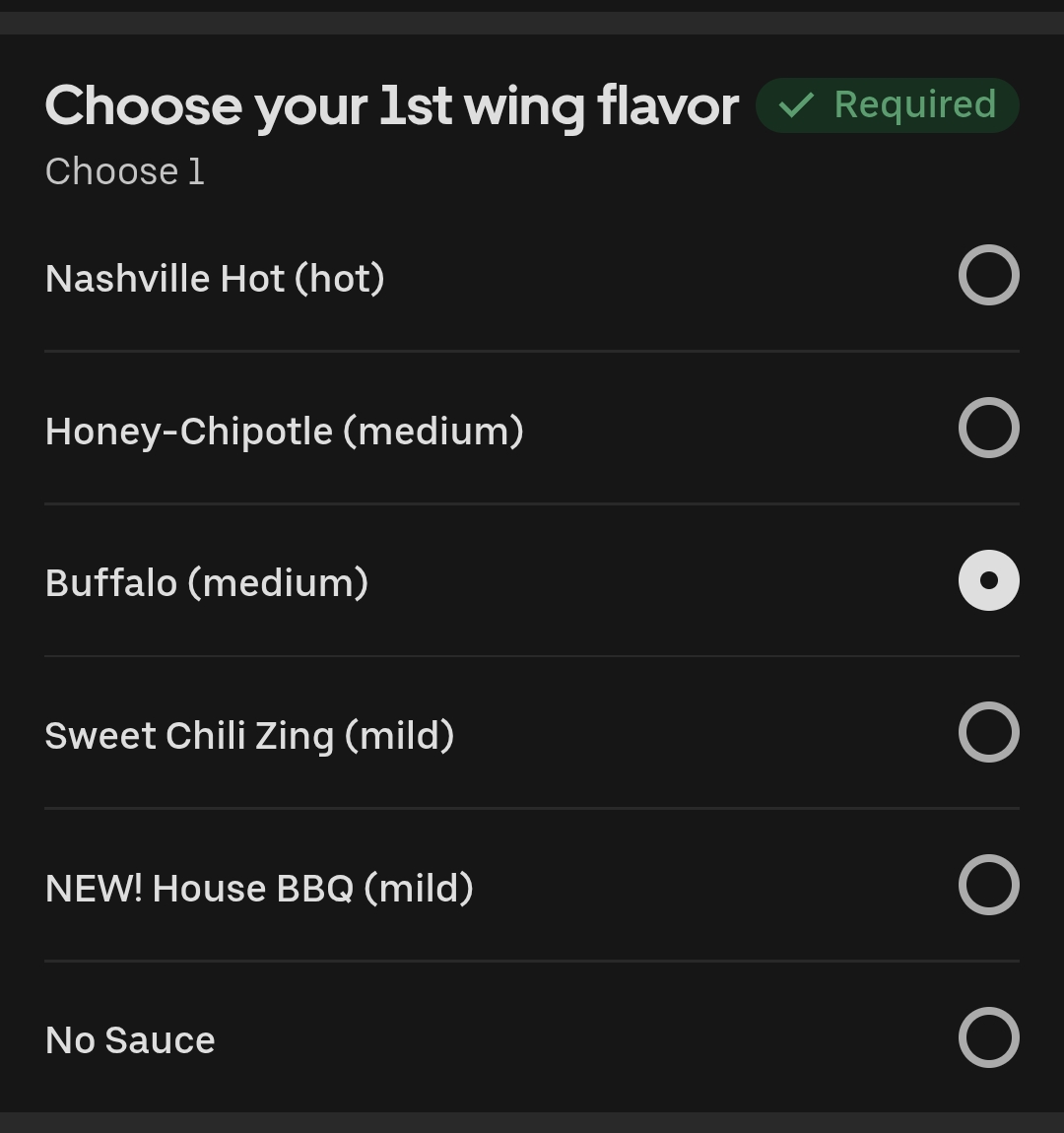 You don't buy wings here, you buy pieces of chicken with flavored sauce lightly drizzled on them, and it is distinctly not enough. But worry not, they sell additional sauce to pad your bill!