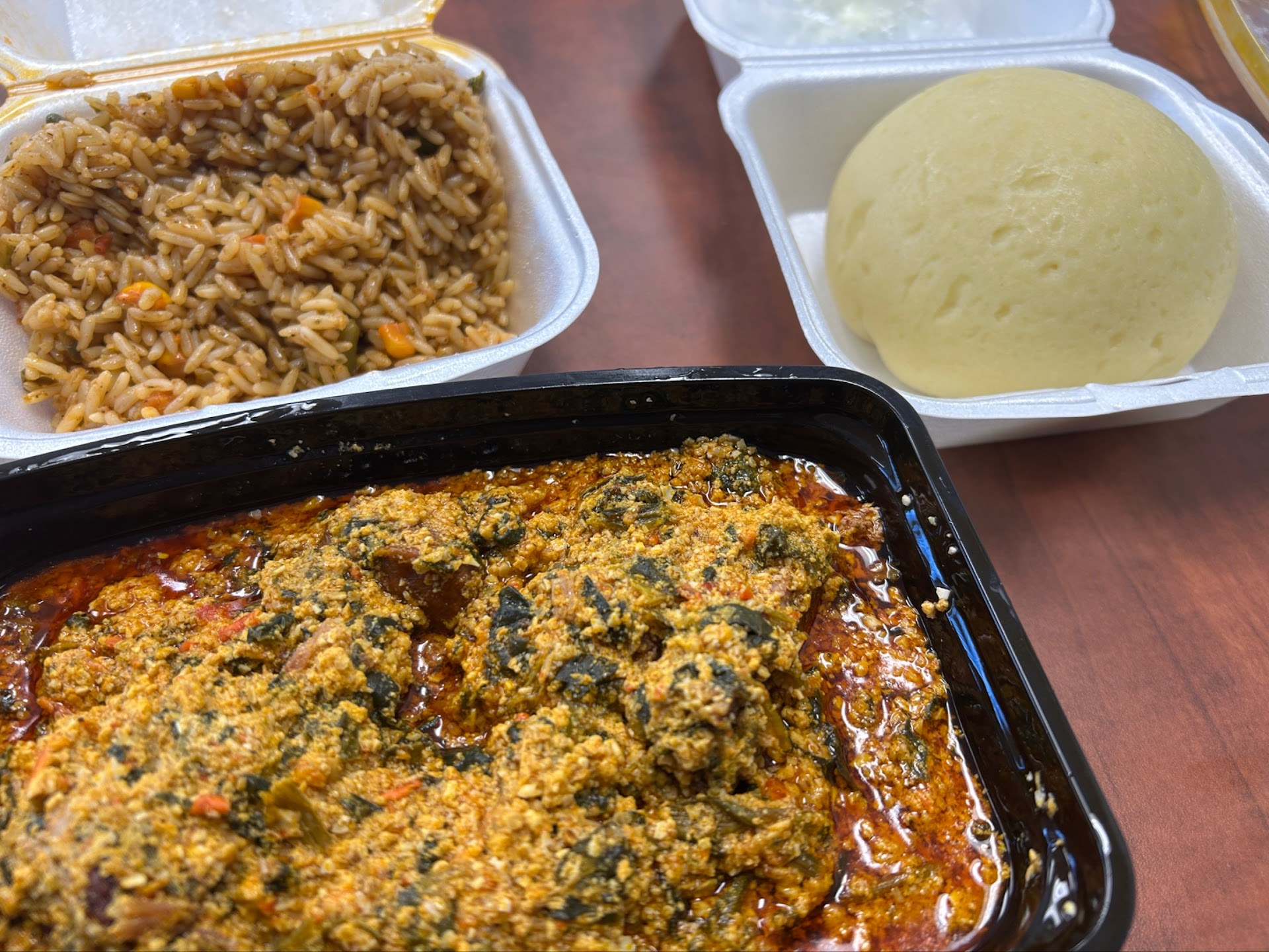 Read moreThe service was good. I felt good energy from the ladies,they explained dishes with pleasant smiles. The food was delicious. I bought several dishes (don't judge me) I was a happy and satisfied customer. The are newly opened so, I recommend you give them a try if you want authentic African food. It's been several months of me going there now and I'm changing some things now. I have a serious problem with their menu because it's changed. Every time I try to order anything with seafood it's NEVER available! Then, I ask for things that's on their menu ie oxtail and they haven't had it yet it's on their menu. I think the quality is suffering because of the high demands. I think it's going to hurt them later if they don't...
