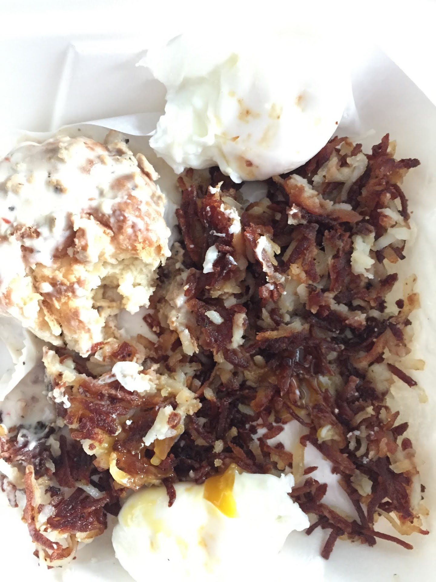 My boyfriend ordered the biscuits and gravy — we did not realize until arrival that we were paying $9.00 for a single biscuit with gravy. The biscuit was so dense that we struggled to cut through it, and the texture was really tough and rubbery. His meal did not arrive with the house potatoes as advertised, but I gave him the hashbrowns I had ordered, which were terribly burnt (see attached photos). The only redeeming part of his meal was the poached egg... “Those were nice” were his exact words. We have made it a point to try and support Grand Rapids’ local businesses, and I understand that things are especially stressful during this season. Things happen and there may have been some sort of extraneous circumstances leading to the lapse of quality, but we were truly surprised that an establishment with such rave reviews would deem our meals as appropriate to serve...