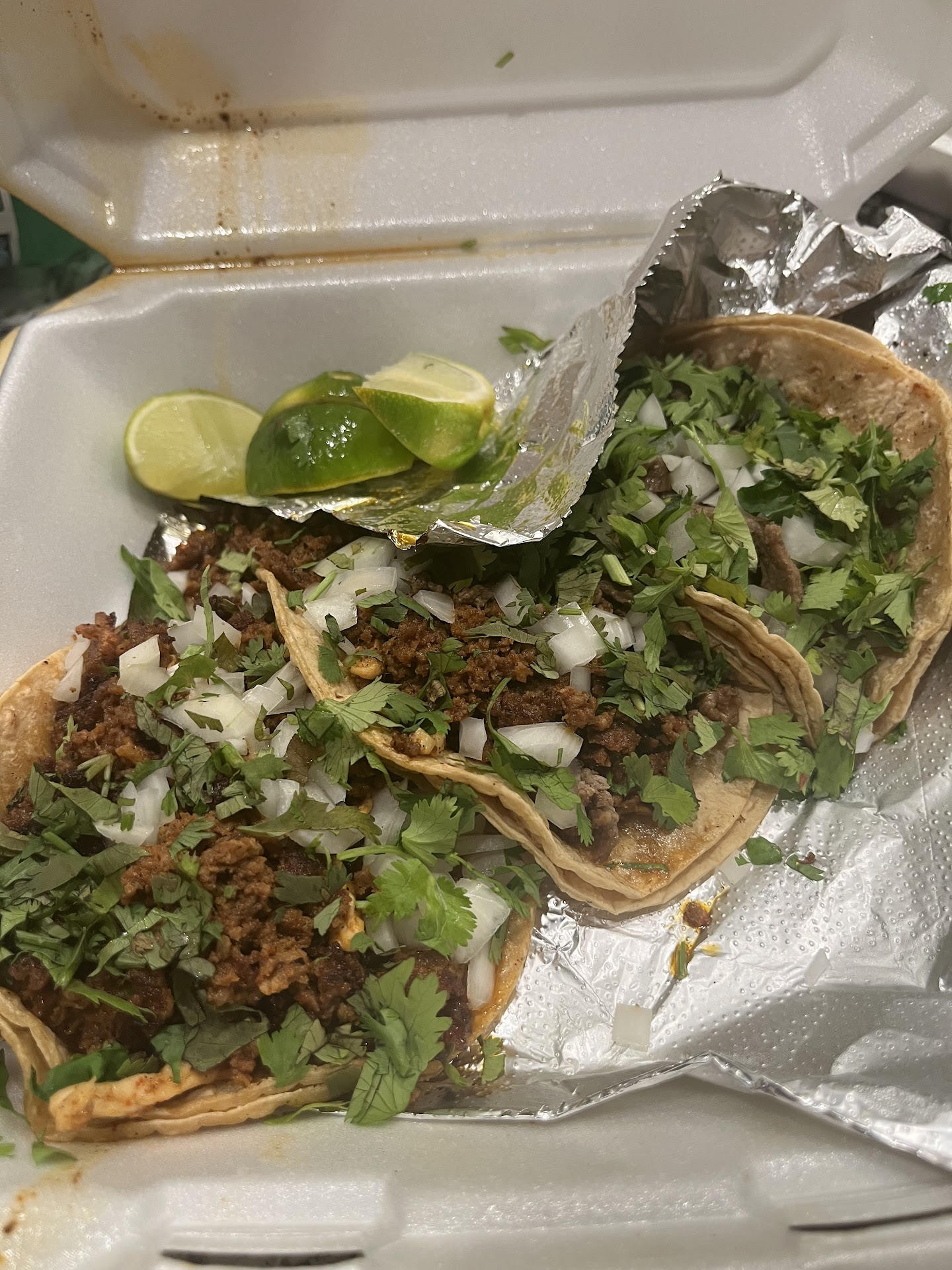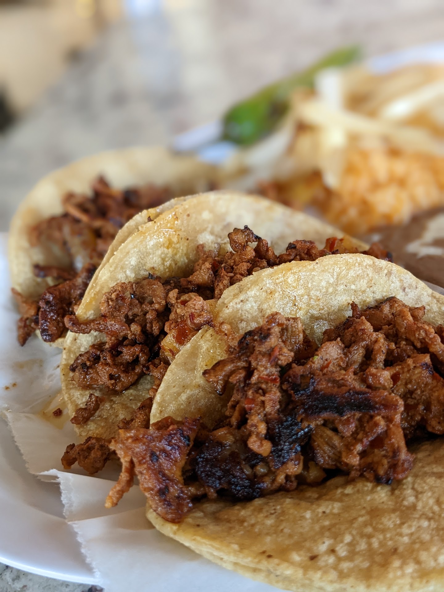 Read moreThis place is SERIOUS value for the price. Tacos here are in the 3-4 dollar range (depending on what you add), but the meat portions were MASSIVE. Absolutely no exaggeration: more than half the taco shell was just overflowingly stuffed with steak. I'm normally a 3-5 taco eater (depending) but these I struggled to get the 3rd one down and I was genuinely full & satisfied. Seven tacos completely fed 3 people. I'm seriously impressed, as this was meant to be a small Halloween treat, but ended up being a full on dinner -- plus their house-made sauces are spectacular. We will definitely order again. Only spending about $12 per person, I rate this a 9 out of 10. Maybe even a touch beyond.