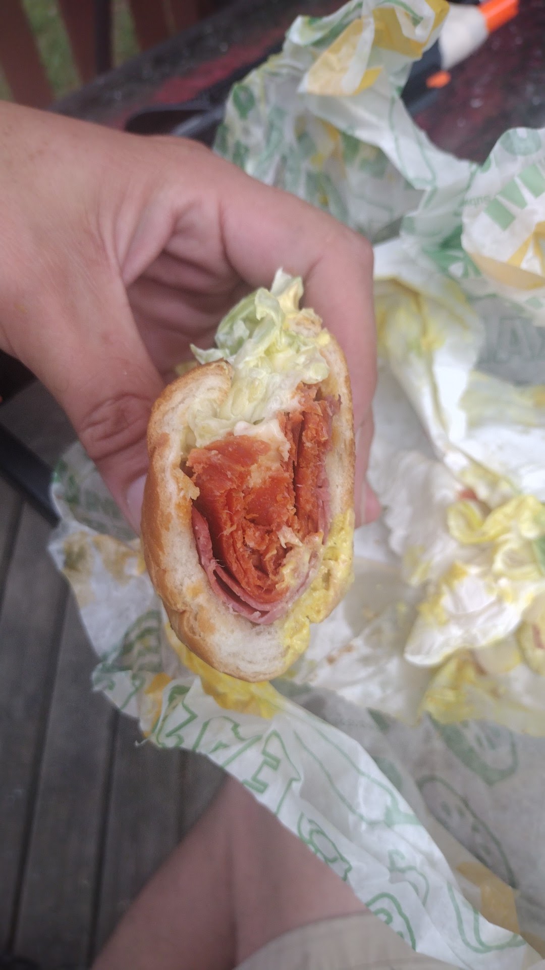 Lo and behold I get home and disassemble my sandwich to find only 6 slices of ham and 12 pieces of turkey. But I was charged for double meat. It’s the principle that she argued with me and was less and less friendly which isn’t saying much since she...