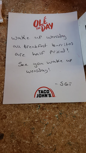 Now Taco Johns, before you leave the comment to call customer service, which was the advice to the last disgruntled customers review, I am going to note that I called the next day. 6/9/17, I was transferred to Matt's answering machine and never heard a response, going on 5 days later (3 of which have been business days.) Which makes me wonder if this review will even register on your radars.