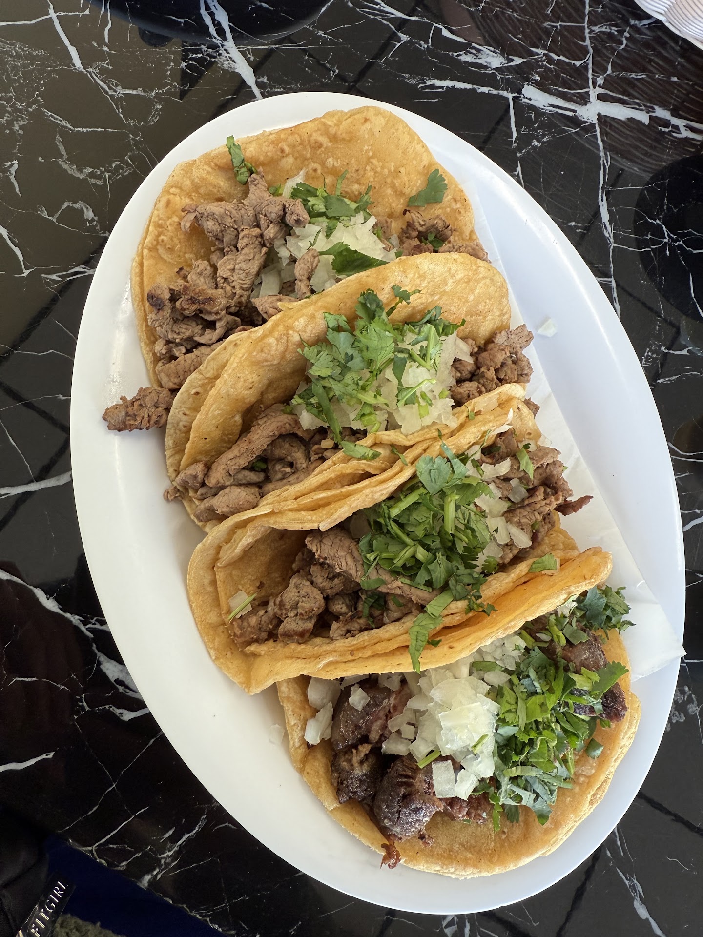 My mother ordered caldo de res, and I got three steak tacos and one taco de cabeza. The taco de cabeza was okay—I’d rate it a 6/10, but the steak tacos were the worst I have ever had! The meat tasted precooked and reheated, and my tortilla was actually hotter than the steak itself.