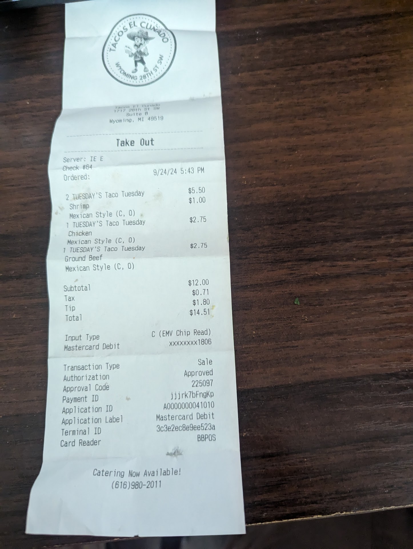 Read moreWe stopped in for tacos after jiu-jitsu. I walked in with $70. Our taco meals came to approximately $45. I gave the young lady 2 20s and a 10 dollar bill. She gave me a 5 and some change. I put the 5 in the tip jar which left me with a 20 dollar bill. I saw they sold flan and gave her the 20 to pay for it. She gave me only coins back. It took me a minute to realize she mistook the 20 I handed her for a 5. When I asked about it she insisted I gave her a 5. I know what I walked in with. We watched the camera that was on the drawer but the decorations and her head were in the way of the cash exchange. They were supposed to count the drawer and contact me when they discovered I was being truthful. But instead, they were dishonest and more than likely pocketed the cash difference in their drawer. My partner told me that they would steal the money from us. I truly had hope that there were decent people left in this world. I was wrong. The flan wasn't good at all. The steak was burnt. We will never return to such a terrible establishment. I advise against using cash at this place they...