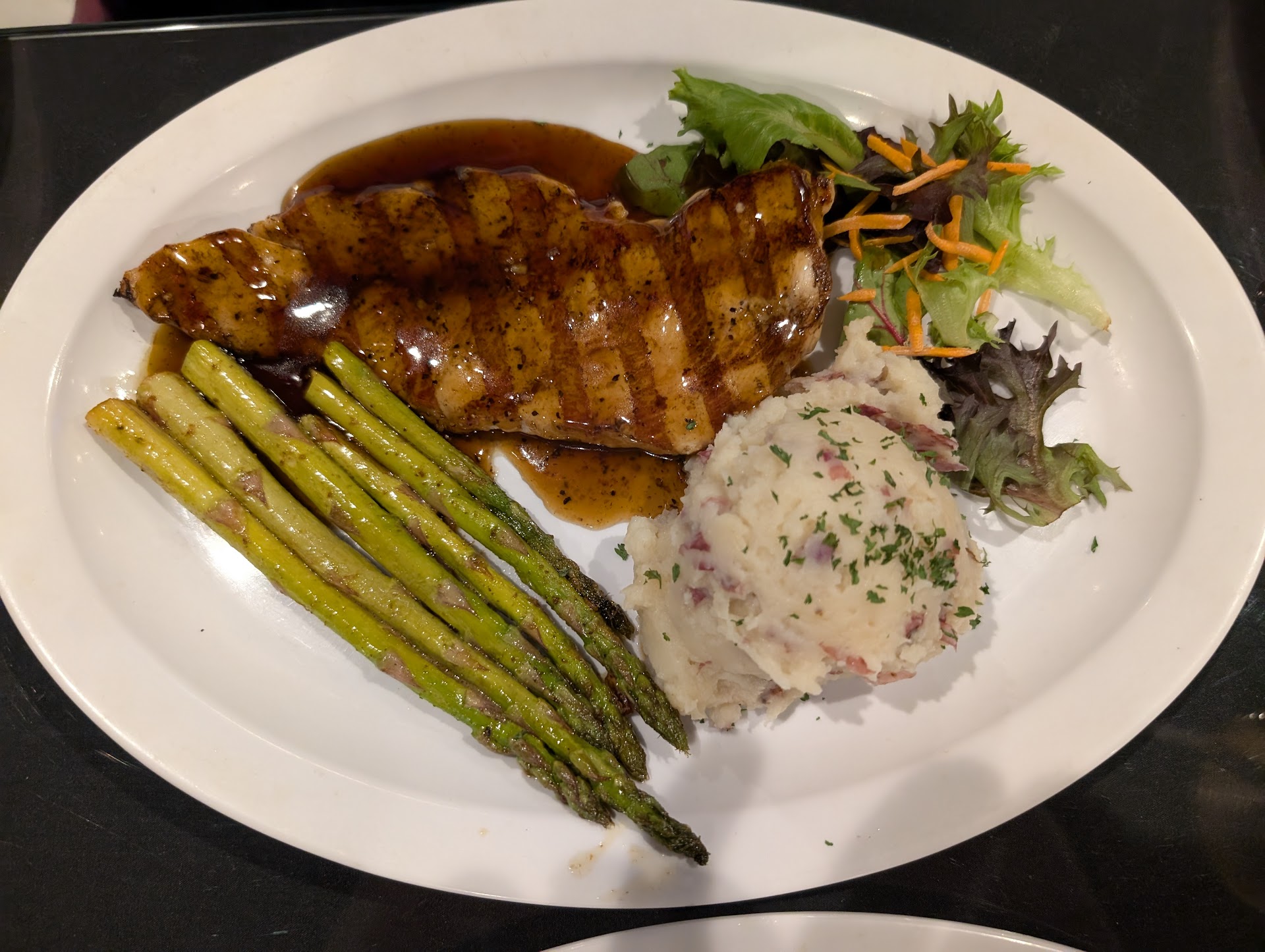 Read moreGreat service, great food. The bourbon-glazed chicken was amazing and the Alfredo pasta was delicious. Our server was attentive, but not overbearing and did a great job with providing suggestions and easily accommodated some minor modifications (like no peppers with the veggie of the day). I love that we could support a small business too! The only reason the "atmosphere" gets four rather than five stars is that the outside of the building is rather off-putting with the blacked-out windows. Inside is very classy and inviting. So, don't let the exterior deter you! This could be your new favorite...