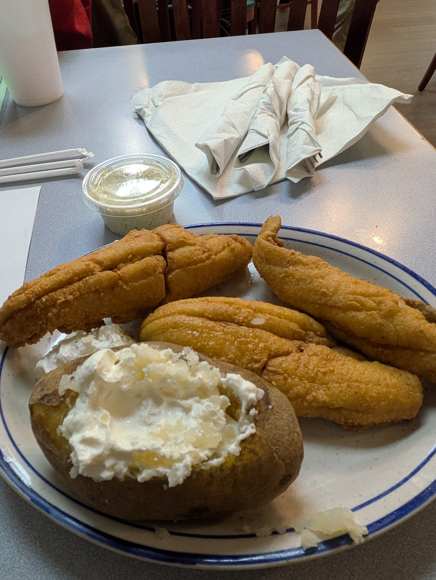 Read moreI have seen this place for years going down the interstate from Wilkes to Winston. But I don’t try new places often. I wish I’d stopped soon. My Bestfriend lives in Yadkinville and she’s mention she ate there. So this passed week I was in the mood for seafood and I decided to ask my BFF was the food any count there. And she said she has been about 4 times and she was satisfied each time she went. The reviews was really mixed, but most places has a few bad reviews, you can’t make everyone happy, and some people are just not happy no matter what. Here is my opinion. I loved it so much, I wanted to go back the very next day for another meal! As a kid my family didn’t live far from John boys and the flounder there was the best around but the last few years the food is not what it once was and always makes me sick. My parents love flounder but haven’t gotten any in a long time due to all the bones that’s in John boys fish. And it used to not be like that. I got the Canadian flounder, with French fries(recommended by Madison), my husband got chicken tenders, with french fries, one of my friends got the special (chop sirloin steak with baked potato) * also known as a hamburger steak*, and the other 3 friends got popcorn shrimp. All 6 of us was full happy and needed Togo boxes! And they automatically bring out bowls of hush puppies. I can’t wait to take my parents there to eat. And I hope to request the same waitress Or my little cousin’s friend that I found out works there as well. Our waitress Was a girl named Allison, my other pick...