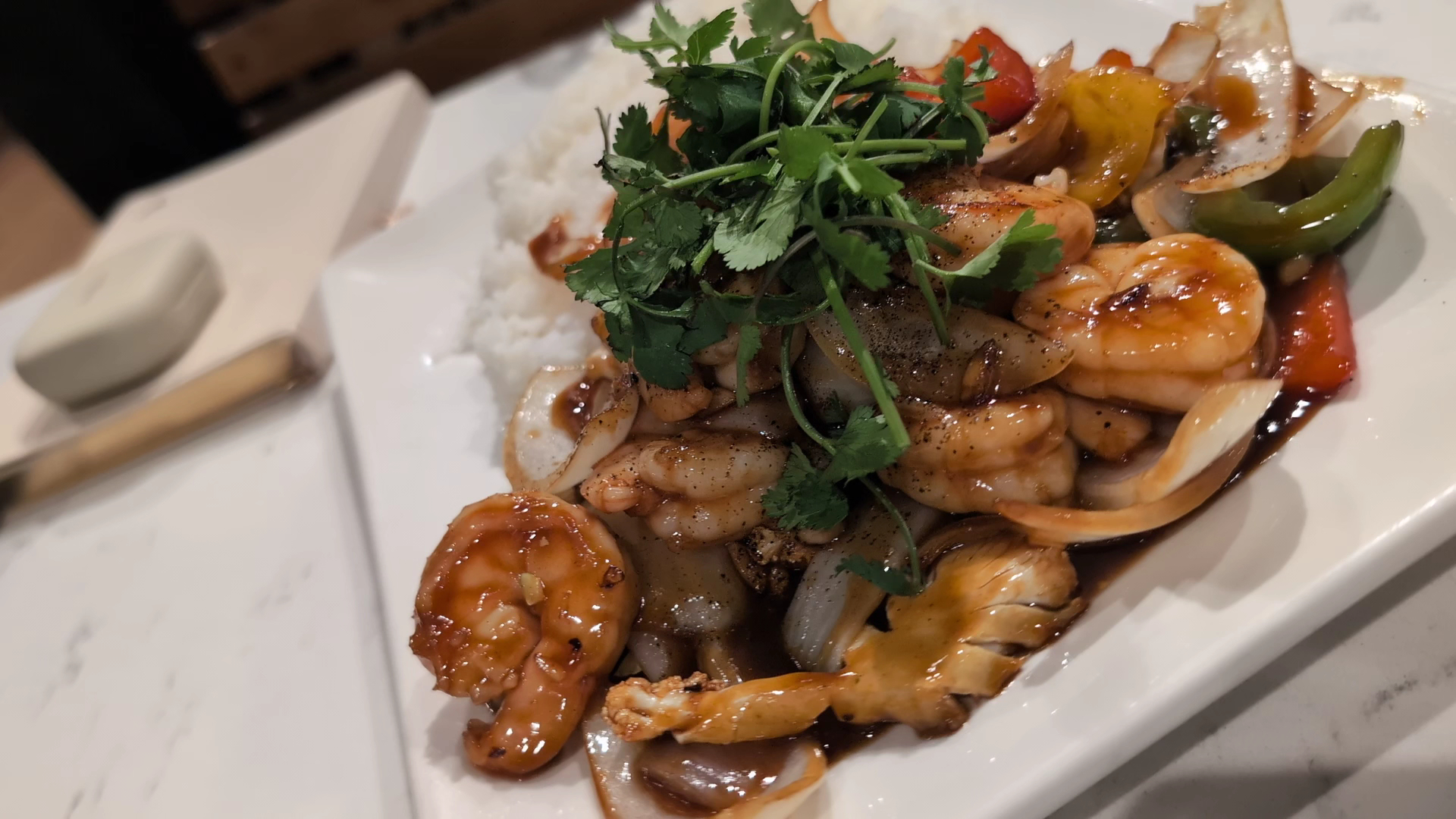 Read moreTook my dad to this new spot to eat a late lunch. Once inside, your slapped with such amazing smells, its like being hit with awesomeness!. . The smells of spices, herbs, sauces, and fresh cut vegetables fills the air. Such tasteful interior arrangement makes you fill welcomed and the smell of fresh food, makes your stomach crave anything their cooking. We were greeted with smiles, and we were able to choose were we wanted to sit, and we choose a small corner. It was real clean, and smelled so fresh. May I add that the restrooms were very clean!. . a BIG+. Once we got our menus, it was very hard to choose from all the choices, as the pictures made them all look good. So we went with all the ones we thought would taste great. The waitress asked if we could eat all that, and we said, NO, but we gonna try!. .. . haha. She smiled and laughed with us, and we were off to a great start. She recommend the Shaky beef, and Pho, we choose the spring roles, chicken friend rice, another beef plate, shrimp, egg roles, and the peanut sauce was really good. My dad got the coffee, and I got the lemon iced tea, and let me tell ya,