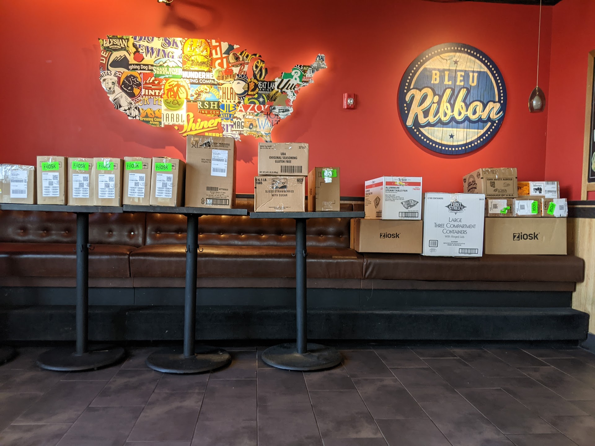 Fortunately, we weren't out for a special evening. Ambiance in short supply, but boxes were plentiful. Table was a little sticky. We found large wet wipes at an empty table and gave our table top a rub down. For a Tuesday night, busy, so I guess they put us in an overflow area -- it was next to the bar.