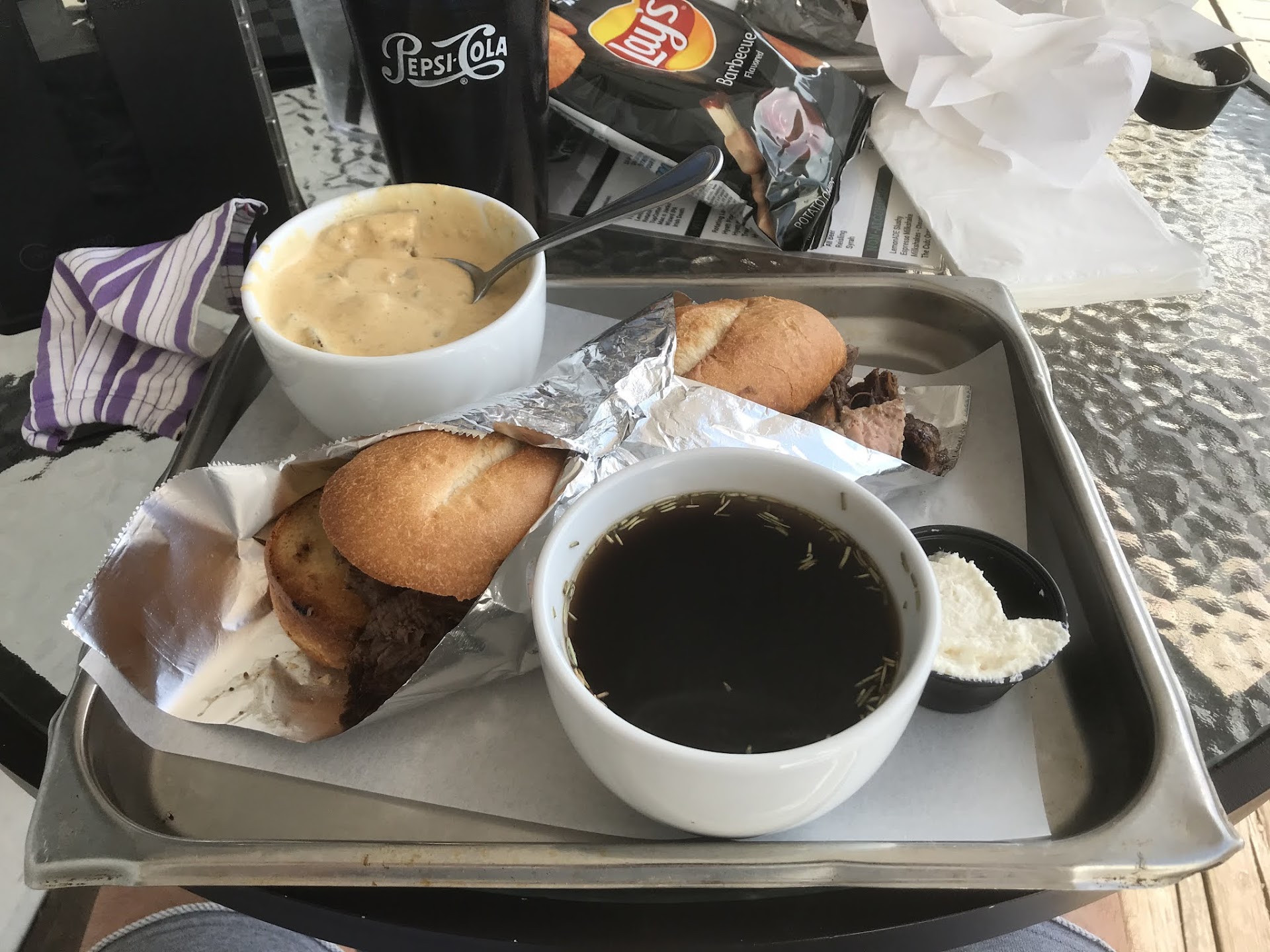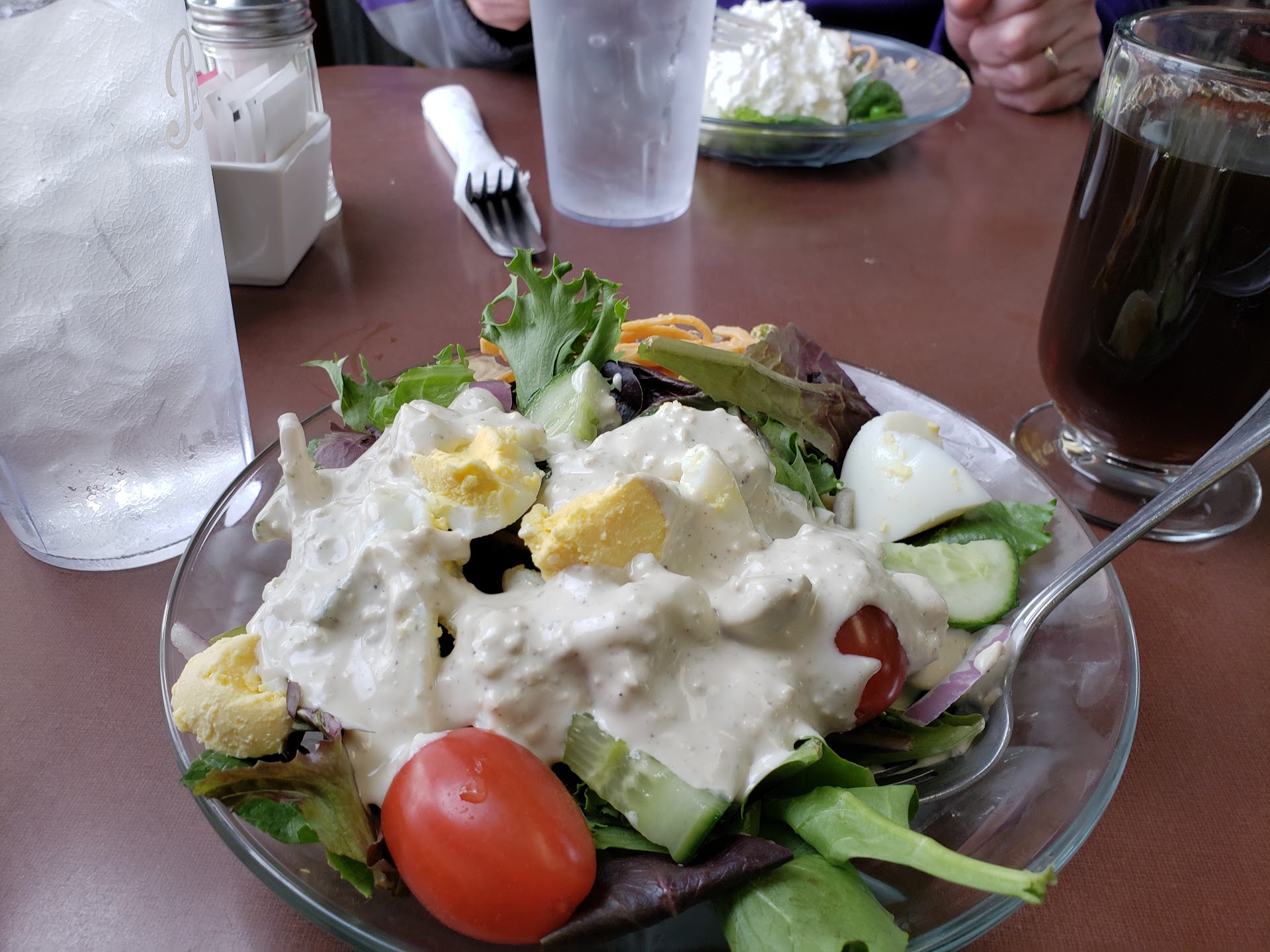 This place is a gem. You might not expect the great but you sure recieve it. I have had two different sandwiches and both have been good, the prime rib dip was eaten before I had a chance to photo it. Looked delicious and was delicious oh my, it may be my favorite. But there is the best deal in town here too! A sandwich gets the option of a salad bar and soup....oh boy, I love salad! The bar provided is fresh, ample, and good variety. They have the best bleu cheese dressing, healthy amounts of bleu crumble and it's not soupy. Eating here will leave you completely satisfied and full. There is a home cooked element as well as providing a full ration. This is my new haunt for lunch but they also do breakfast! Come by and bring a friend, you'll be greeted by Karli who serves you with a smile and...