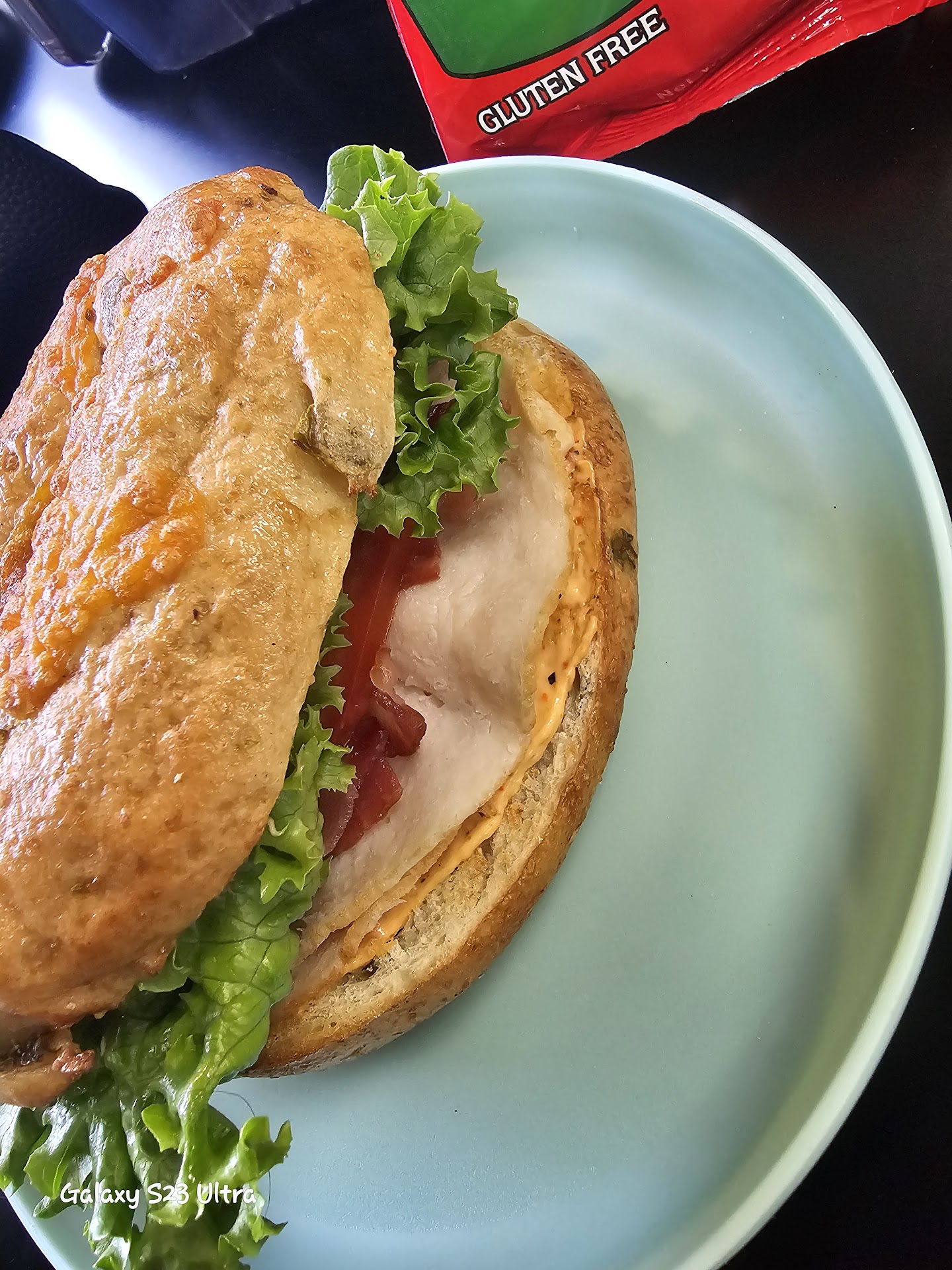 Food itself, a bagel garden sandwich,...
