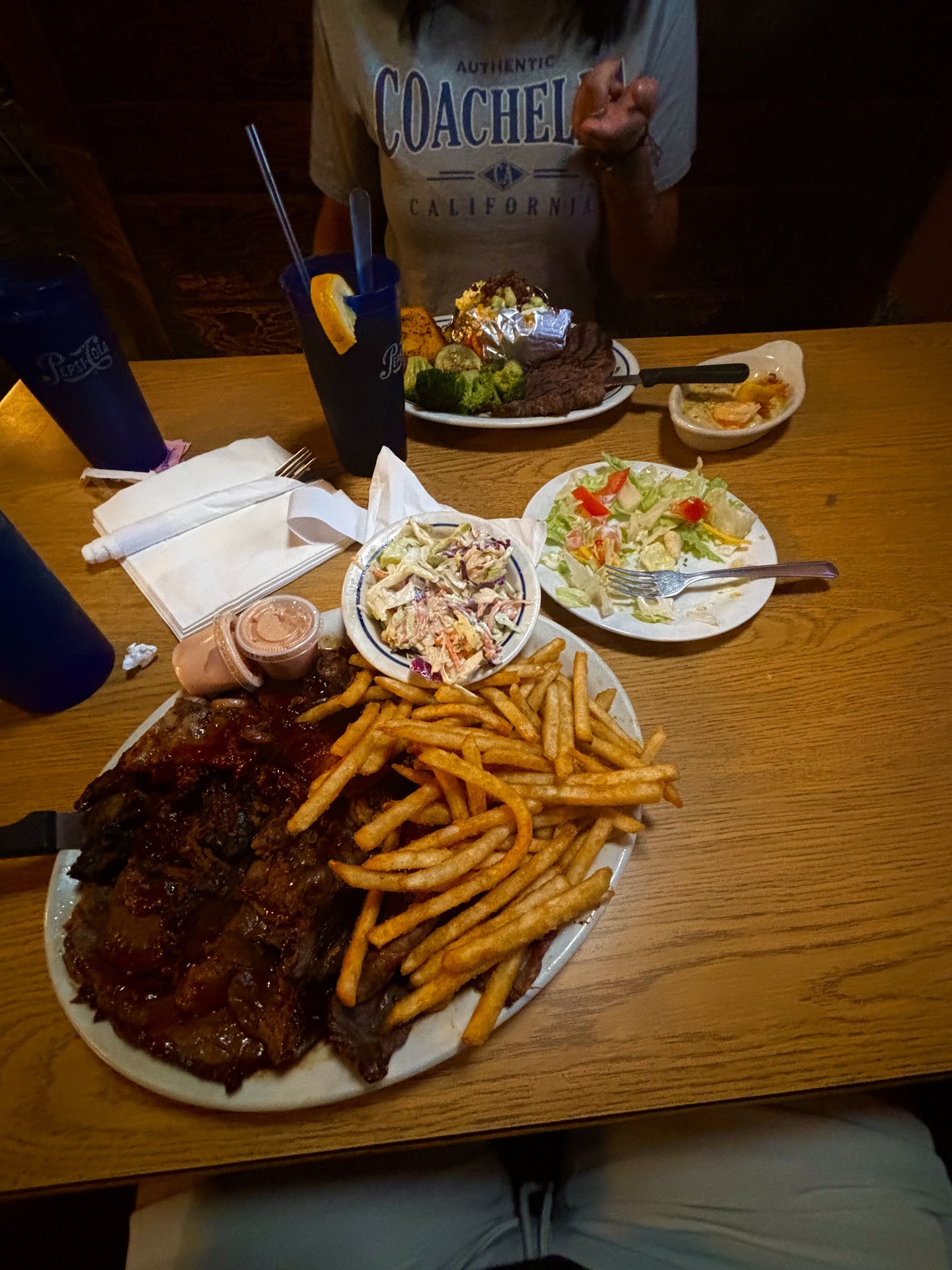 Read moreAbsolutely one of the best meals I’ve had here in Yakima. I rarely support or even branch out to local restaurants as I am one to eat at places I’m used to. Thankfully my girlfriend and I decided to drive around to find a local restaurant that we had never visited. I’ve had drove past this place countless times and decided to give it a try. Let me start off by saying that the place was very welcoming despite being dead empty. I assumed this was the case as we had showed 50 minutes till closing. I am not one to complain about service nor food as I had expected things to not be at the best towards closing. Despite this, we were serviced in a timely manner and had a very nice meal. Don’t get me wrong, the dishes weren’t a complete 10/10 but still packed flavor. Compared to bigger chains like Dickeys and Texas Roadhouse, the meat has its own unique flavor. I’ve been getting into bbq recently and despite not craving the “bbq sampler” I got it anyways. I’m glad I did not pass as I got a bang for my buck. The dish was so good that I dropped bbq sauce on myself! Fries were warm inside with a light crisp finish. And the coleslaw caught me by surprise as it had its own twist. The meat was definitely cooked in patient process as I had no meat that was chewy. Turns out the owner does his own cuts and has 3 different types of smokers! My girlfriend had gotten the steak and shrimp special with an appetizing baked potato. Amazing food, service, cozy atmosphere, and a great conversation with the owner for the price of $60 (with tip). You really can’t beat it. You can tell the owner wants to grow and better his business. To all the negative comments, please give this place a 2nd chance as the owner seems to take feedback and apply it to the business. Definitely...