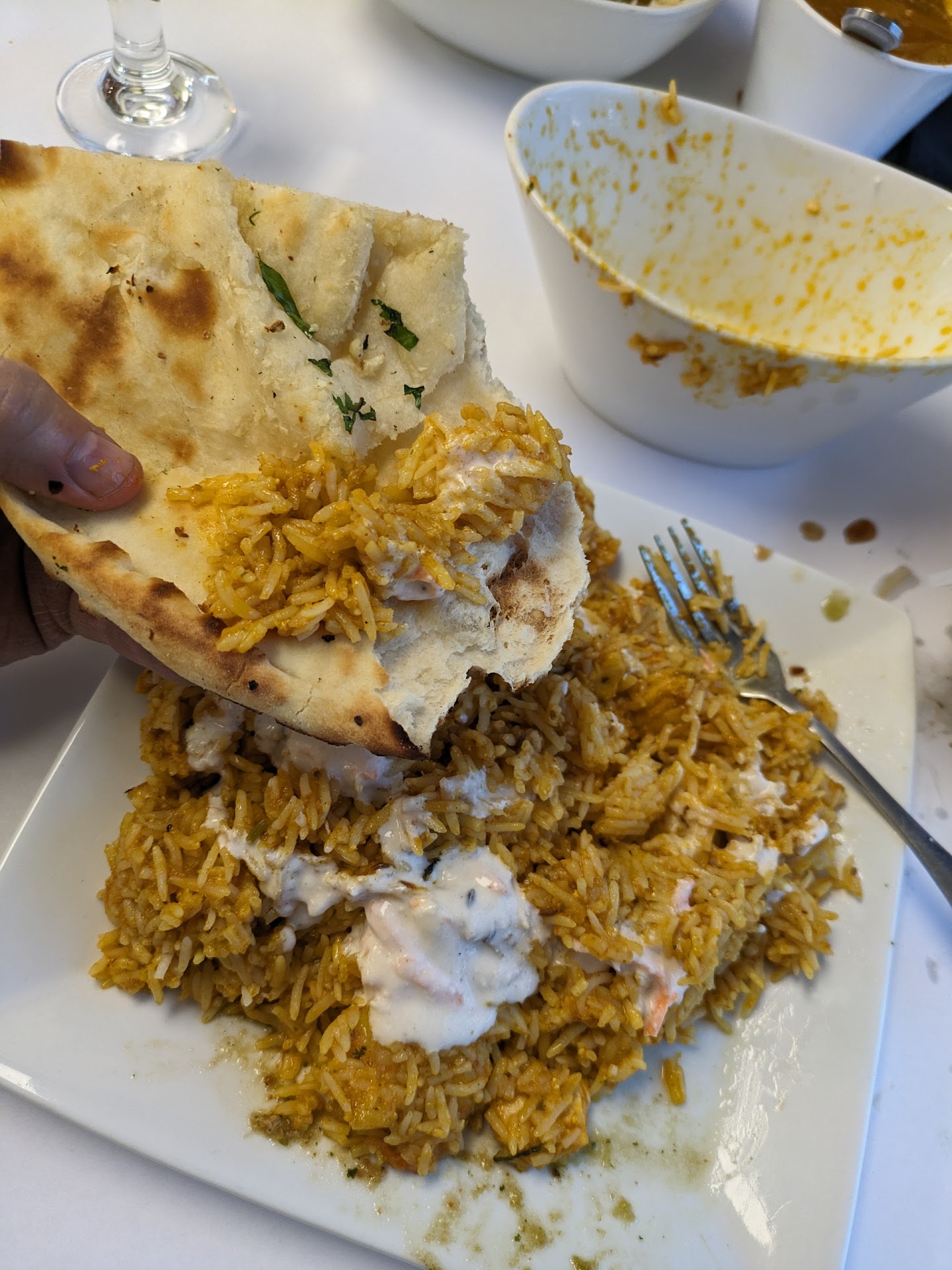 Ā Ā Ā Read moreThis was my first time at this restaurant. The food, service, and atmosphere warranted my time to share this review with you all. Upon entering this fine establishment, I was greeted promptly and kindly. The room was filled with tantalizing aromas igniting my desire to view their menu and order promptly. Upon seating I was served my drinks and once I found the delicious Lamb Curry with Plain Naan, they took my order and I waited a reasonable time for such a delicious meal. The environment was enjoyable as I waited, with beautiful music and a clean environment to dine in. Upon receipt of my meal, I placed the beautiful cloth napkin upon my lap and began eating. Upon my first bite, a rush of Dopamine overtook me, the food was beyond compare, served hot, fresh, paired with beautiful aromas and filled with flavors that soothed me. I highly recommend for anyone to come to this restaurant and experience the prompt and friendly service, take in the aromatic and clean environment, and embrace the experience of some of the most delicious food you could imagine. To all at The...