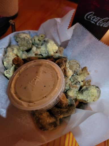 And say little hole in the wall But the food is good The Burnt ends We're good I didn't overly care for the sauce that they came with they tasted better without it. The fried mushrooms were excellentAnd the original Buffalo wings were good they don't have plain blue cheese and ranch type mix which actually wasn't bad considering I don't like ranch at all. The Caesar salad was awesome I really enjoyed that the atmosphere was very loud especially since it's a small space. They do have a bar with 3 tvs with no sound music was loud as well. The gentleman behind the bar were drinking and alcohol as well as the patrons. The waitress as well did a great job. The only concern their was her snuggling up to her BF while he was at the bar drinking and then walking out with a beer in hand. It definitely seems like it's more the local hangout and and like Cheers everyone knows each other by name. The true downside is my hotel was 7 minutes down the road and they don't deliver upside I was 7 minutes down the road. Hope this review helps. It's food that's worth the try and everyone seemed personable and service was good and food came out fast. In the end that's all that truly matters. ...
