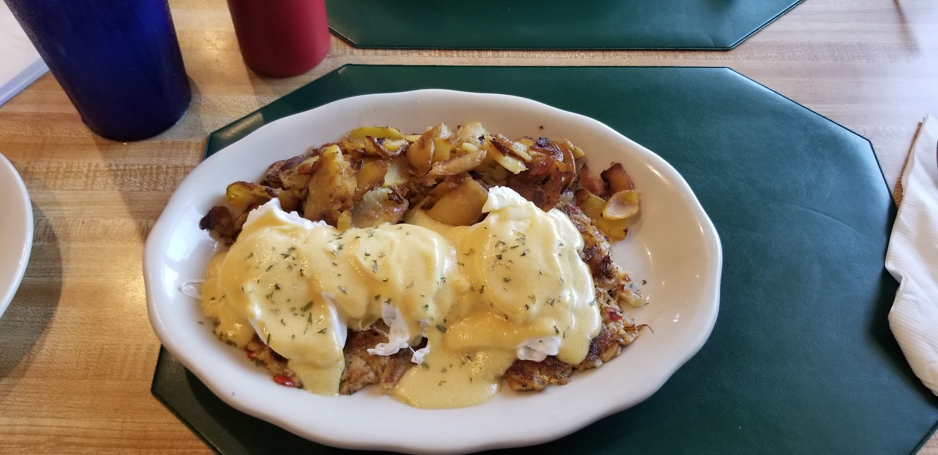 Ordered the Portuguese eggs Benedict and the crab cake Benedict with a side order of sausage and bacon. We get our sides first, with an extra side of "home fries" which we were both confused about because we never ordered that. Our food came out and we were both dissatisfied at the home fries just by the look of them. They were scalloped potatoes, not home fries. We began to eat and the food was horrible. Crab cakes were the worst crab cakes I have ever eaten. They were extremely fishy and tasted really off and old. The poached eggs weren't boiled enough, extremely runny. Hollandaise had no flavor, mostly just added a pretty color. I was going to leave a tip for our waitress and throw the food away, but she left mid meal. Another took over and she didn't say 2 words to us until my fiance had to walk over and ask for boxes. Got the bill and it came to almost $55 and change. WITH THE EXTRA SIDE OF HOME FRIES ADDED WHICH I NEVER ORDERED. So disappointed in this establishment. Several hours later after eating the crab cakes benedict, I got food poisoning. Never eating here ever again!! Worst service and worst breakfast food I have ever had!!! Save your money and eat...