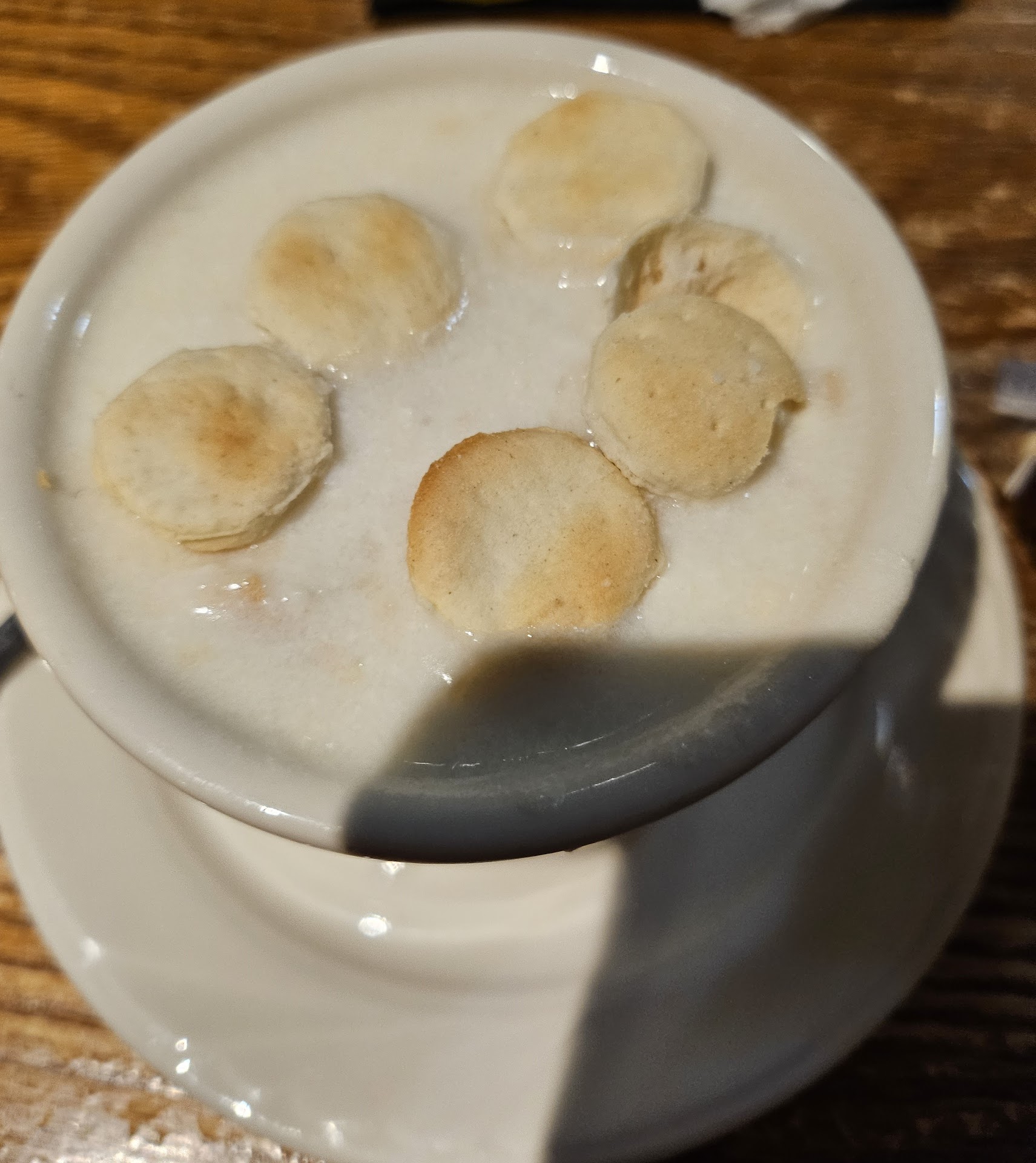 The menu has great options at very well appreciated prices. Of course, we started with the chowder and it was a perfect balance of potatoes and clams while being creamy and not too overpowering of any one flavor. I was craving a steak but don't like when it comes out too black from char, and our waitress was extremely accommodating to that request. It was perfectly cooked and had great flavor and the red mashed potatoes were a great side and a nice change of pace from fries. My mom ordered the broiled scallops and loved them so much she would have probably licked the bowl if that was socially acceptable in public. They were buttery, the crumb topping had great seasoning too it that had a nice flavor and the serving size of potatoes was very generous. The meal came with bread and I added a, pretty strong, vodka lemonade drink that was on their menu to the meal. We were so impressed that, a few days later when we were contemplating adding a day on to our trip, coming back here was a reason we decided to!
