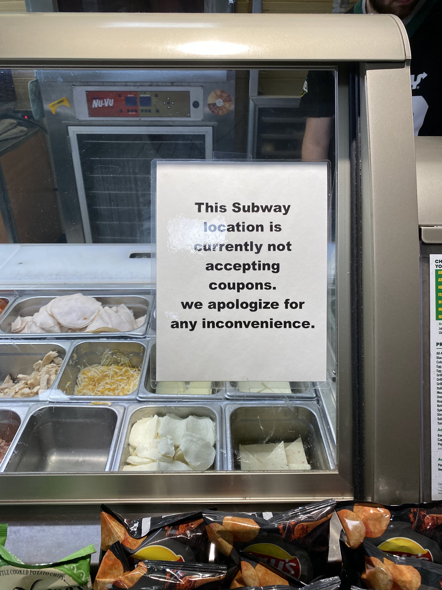 As someone who works in the food industry, I would be happy to answer the review below. Due to Covid-19 many distributors are having a difficult time supplying stores and restaurants with the items they need hence why a place like Subway may be out of certain items. As to the grocery store being across the street. While distributors take precautions and safety measures when packing and sending products such as produce to restaurants and grocery stores, once they have been put out for the consumer anything can happen. I have personally seen a person sneeze into their hand and then pick up a few loose apples before putting them back on the shelf at the store. Restaurants are not allowed to just run to the store and purchase these loose unpackaged items for just that reason. No amount of washing is going to remove the possibility of Covid from a cucumber or tomato. I hope this helps in understanding this issue that is effecting many businesses...