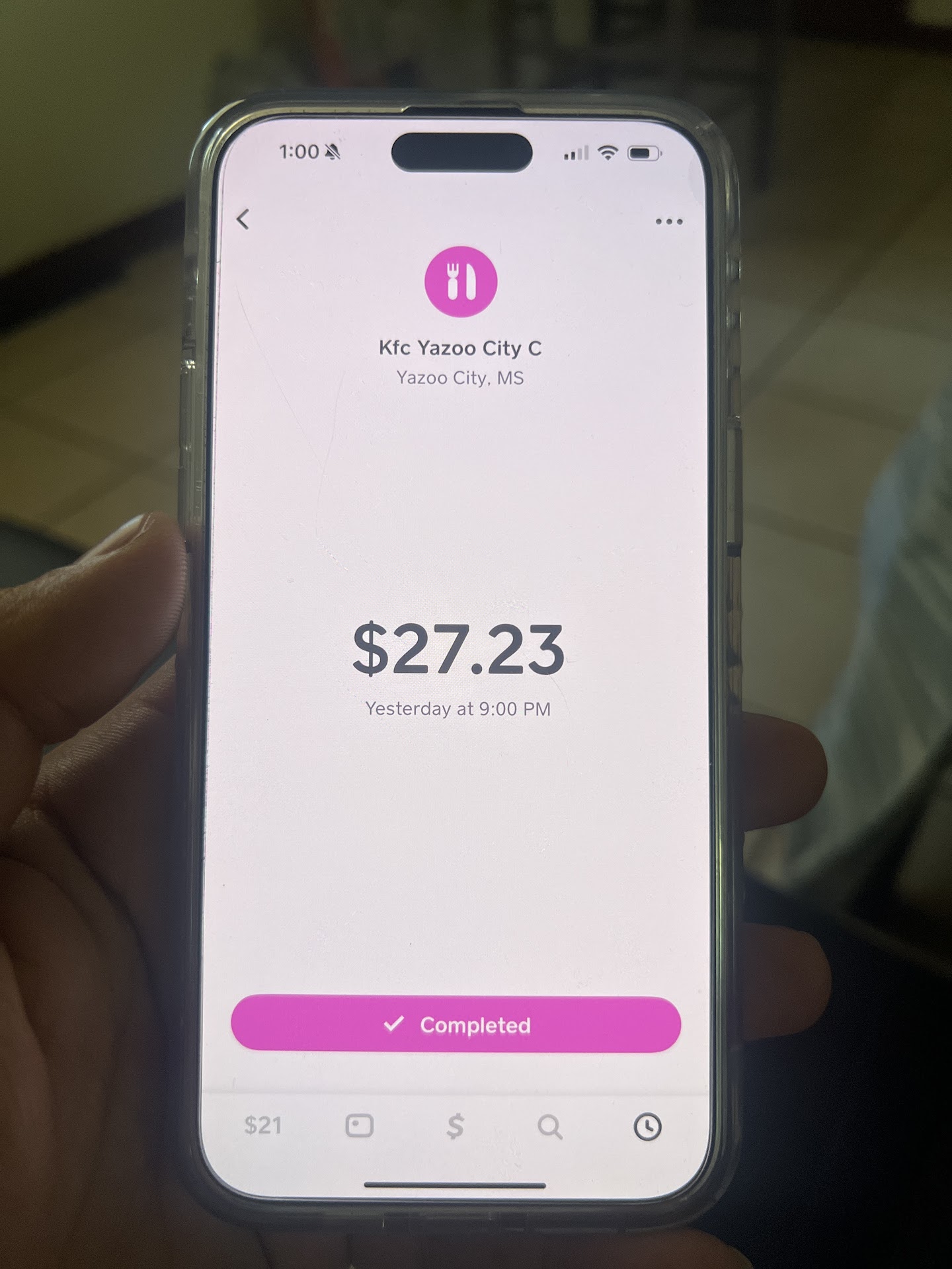 Read moreI’m a local business owner in yazoo city. If you want take out food from drive way. First open the box and see what the gave you. they gave me old fried chicken. It was dried look like it was sitting there for long and they worm it up and added in boxes. it happened with me twice. So be careful. I added my cashapp card...