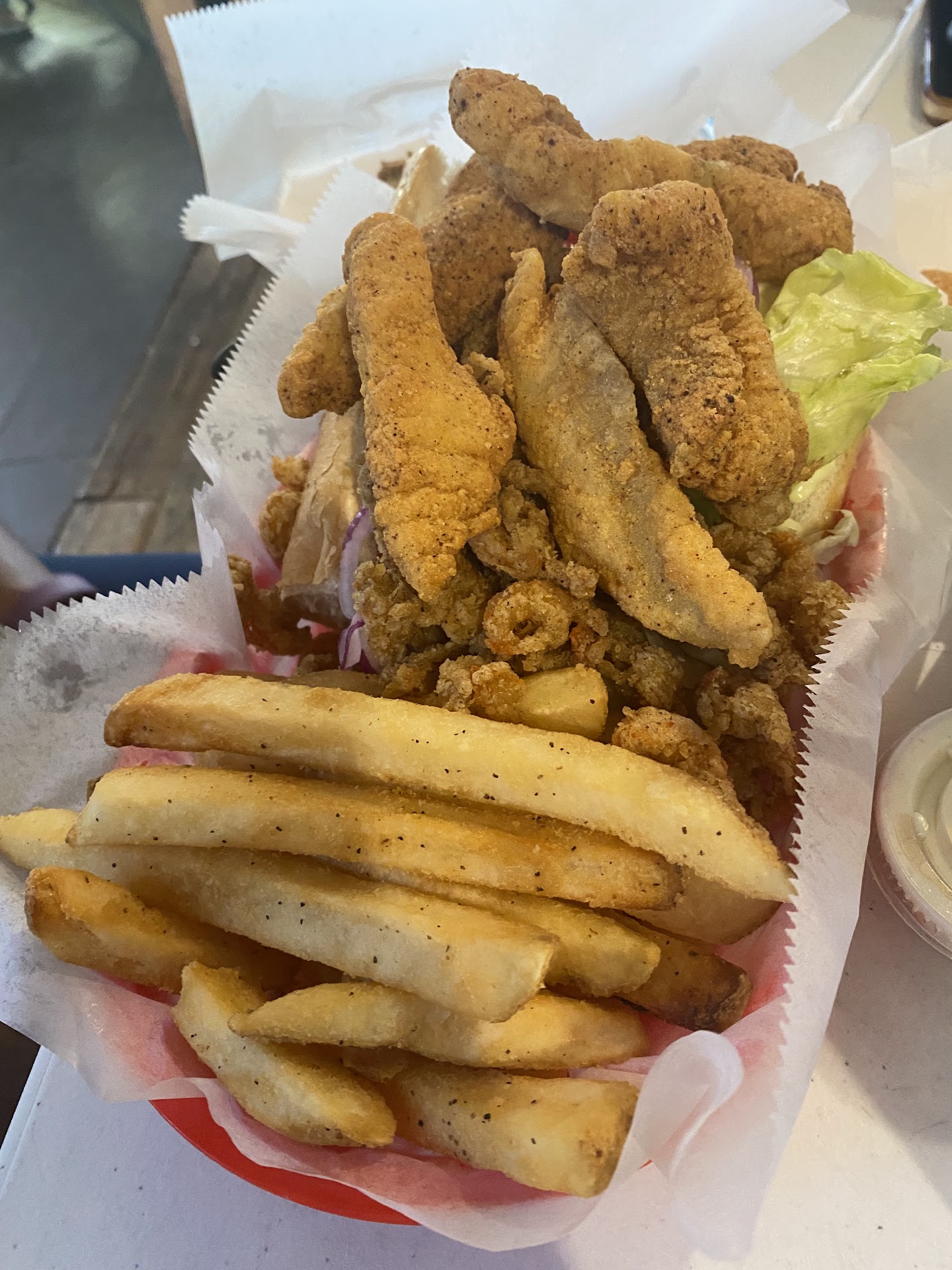 Read moreUsually this place is good, but my husband took me there for my birthday. Everything tasted the same. I ordered a catfish poboy. The catfish was okay, but it was dry. If you have a big sandwich with lots of meat and fixings, put some mayo or something. My husband got a shrimp poboy. It had absolutely no taste and once again, no mayo. The appetizers were not good. I got fried dill pickles. They were greasy and soggy, not crispy at all. To top it off, we couldn't get condiments, drink refills etc. . . The service was terrible. The only thing we got was our check. I wasted $80 on lunch and I wish I would have gone to...