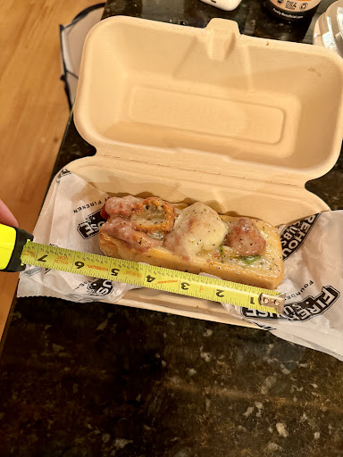 The "medium" meatball sub (GF Bread) was a tiny 5.5" on one side of bread in an open face style. How does one eat a meatball sub that's missing the top side of the bread? Additionally, it had 3 half meatballs (yes they were cut in half), totaling 1.5 meatballs. It was pitiful and looked like it was for a Child's meal.