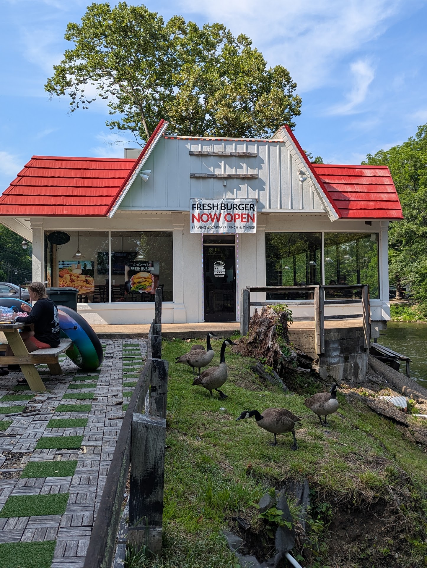 Read moreMy wife and I decided to make a day trip and go to Cherokee NC. Before leaving I did my research of dog friendly restaurants to eat at. In their listing on Google they state they have outdoor deck seating overlooking the River. So I thought it would be nice to eat there. We took our toy poodle and headed out for the trip. Had a great time riding through the town and checking out some of the adventures. Then we headed to Fresh Burger. As you can imagine this was not a dog friendly restaurant nor did they have a deck overlooking the River. We ended up getting take out and going down to the river and ate at a picnic table, which turned out to be very enjoyable. The chicken strips were delicious and the fries were habit forming. My wife got the onion straws, she said they were delicious. The prices were comparable to Zaxbyâs but the food was much better. The two employees were outstanding in customer service. The restaurant was clean and overlooked the river. I would have given it five stars if it had not been for the false advertisement of being dog friendly! Also I will add that the manger offered for us to sit outside at a concrete picnic table that was in full sun and close to the busy road. So at least they tried to offer a solution. I would visit them again but would plan to eat by the river...