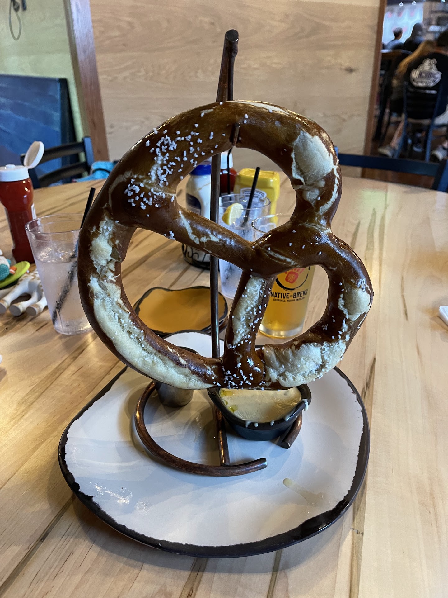 Ā Ā Ā Read moreMy husband and I visited a little less than a week ago, while on vacation. Native Brews is a great place to eat, although their prices aren't entirely consistent with what you actually get (mainly in the area of appetizers). We started with a couple sweet teas, the Colossal Pretzel and fried pickles. The pickles are fry-shaped and very crunchy, which was a pleasant surprise. The Colossal Pretzel is, in my personal opinion, hyped up a bit too much. It was deliciously soft and buttery, the beer cheese was great, as was the stone-ground honey mustard... but not as big as some photos might show and in hindsight, probably not worth the $17 we spent on it. I would feel more comfortable spending about $13 max. Glancing at the menu, there are a couple appetizers that seem way over-priced and then there are others that are decently-priced and what you would expect to pay at a similar restaurant. As far as entrees go, absolutely no complaints. Everything was phenomenal. My husband got the Warrior Burger and I got the Brewhaus Cobb. Both were priced right on target for what we got and exactly what you'd expect to pay. The flavors are creative and mouth-watering. Service was a bit slow for 4pm on a Thursday, but our waitress was friendly and we understand that busy times can often fluctuate, especially in a tourist town. Bathrooms were clean and well-stocked. Parking was adequate. Overall, it was a great place to eat and if we have the opportunity to return (& we hope to!), we will probably just skip the expensive pretzel and go straight to...